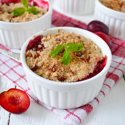 Jesen je čas za dobrote iz sliv. Posladkajte se s slastno in enostavno pripravljeno "crumble" pito s slivami in preverite še ostale naše recepte s slivami.