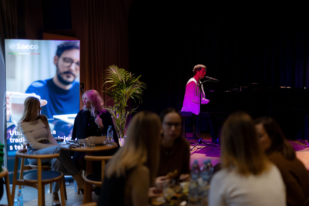 V ljubljanskem Klubu Kazina so pričarali pravo kulinarično doživetje in popotovanje v kavne okuse Srednje in Južne Amerike. Ob skrbno izbranih skladbah Dominika Bagole - Balladera, ki so poudarjale eksotične kavne note, so povabljeni okušali kavne napitke, pripravljene z vrhunskim aparatom Saeco. Ta prinaša v udobje doma bogato italijansko dediščino in inovativen način priprave kave, ustvarjene povsem po naših željah.