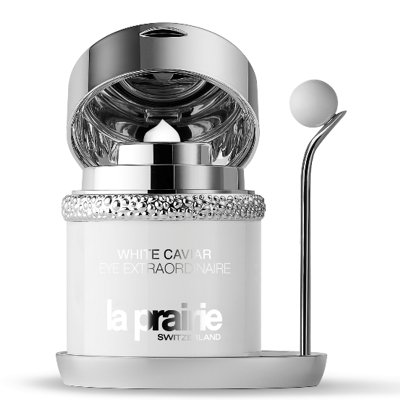 Krema White Caviar Eye Extraordinaire je obogatena z revolucionarno svetlečo molekulo Lumidose, najučinkovitejšim zaviralcem tirozinaze – encima, ki je odgovoren za tvorbo melanina. Formula uspešno zavira nastanek sivih, rjavih, rumenih, rdečih in vijoličnih kromatskih napak, ki negativno vplivajo na naravni sijaj kože, hkrati pa spodbudi odbijanje svetlobe, zaradi česar je koža bolj sijoča. Mastna tekstura formule vsebuje izvleček Golden Caviar Extract in pripomore k povečani proizvodnji kolagena ter krepitvi ekstracelularnega matriksa. Izboljša se oblika oči, koža pa ponovno pridobi zmožnost odbijanja svetlobe. Predel okoli oči je spet lepo osvetljen. Izdelki White Caviar Eye Extraordinaireso obogateni s posebnim La Prairie kompleksom Exclusive Cellular Complex, ki s pomočjo najnaprednejših biotehnoloških raziskav celicam, v katerih se rojeva lepota, vrača novo življenje in energijo. White Caviar Eye Extraordinaire učvrsti predel okoli oči in koži povrne elastičnost ter tako pripomore k bolj mladostnemu videzu kože, ki ima veliko boljšo zmožnost odbijanja svetlobe.