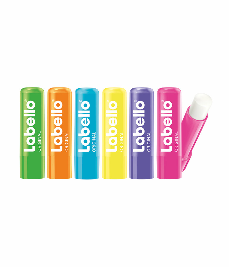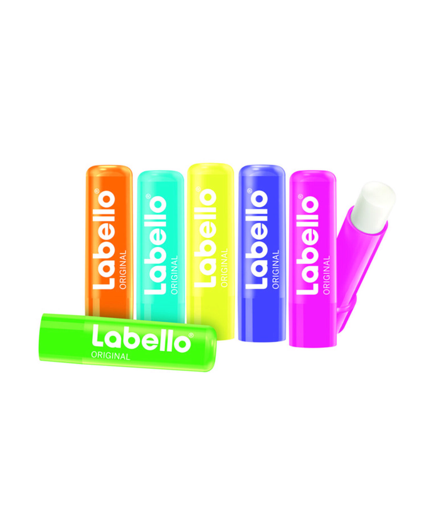 Znani in negovalni balzam Labello Original ima zdaj novo modno preobleko in bo omejeno obdobje na voljo v šestih živahnih in čudovitih barvah: Labello Original Neon Edition. Njegov noenski dizajn se sveti v UV-svetlobi in poživi vsako situacijo in videz. Z omejeno serijo Labello Original Neon postane nega ustnic še bolj zabavna. Po navdihu najnovejših trendov lepote, življenjskega sloga in mode Labello združuje nego s trenutno zapovedanim neonskim trendom in predstavlja svoj legendarni izdelek v šestih modnih neonskih barvah, ki se svetijo v UV-svetlobi in so obvezne za vsako zabavo.
