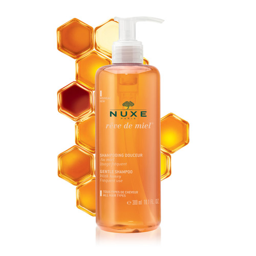 Nežen šampon z medom Rêve de Miel® Nuxe vsak dan poskrbi za čudovito nežno delovanje. Vsebuje vlažilen in obnavljajoč akacijev med ter lase učinkovito umije in jih naredi svilnato mehke in dišeče. Njegova izjemno nežna čistilna osnova je primerna za vse tipe las in ne draži oči. Naravna formula ne vsebuje parabenov in silikona ter lase prepoji s slastno medeno dišavo.