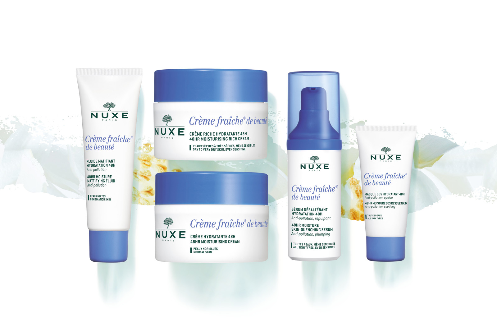 Iz laboratorija Nuxe prihaja pet privlačnih in osvežujočih, novih Crème Fraîche® de Beauté izdelkov, namenjenih vsaki koži in vsem starostim, z 48-urnim vlaženjem vseh slojev kože ter z anti-pollution učinkom proti onesnaženim delcem iz okolja.