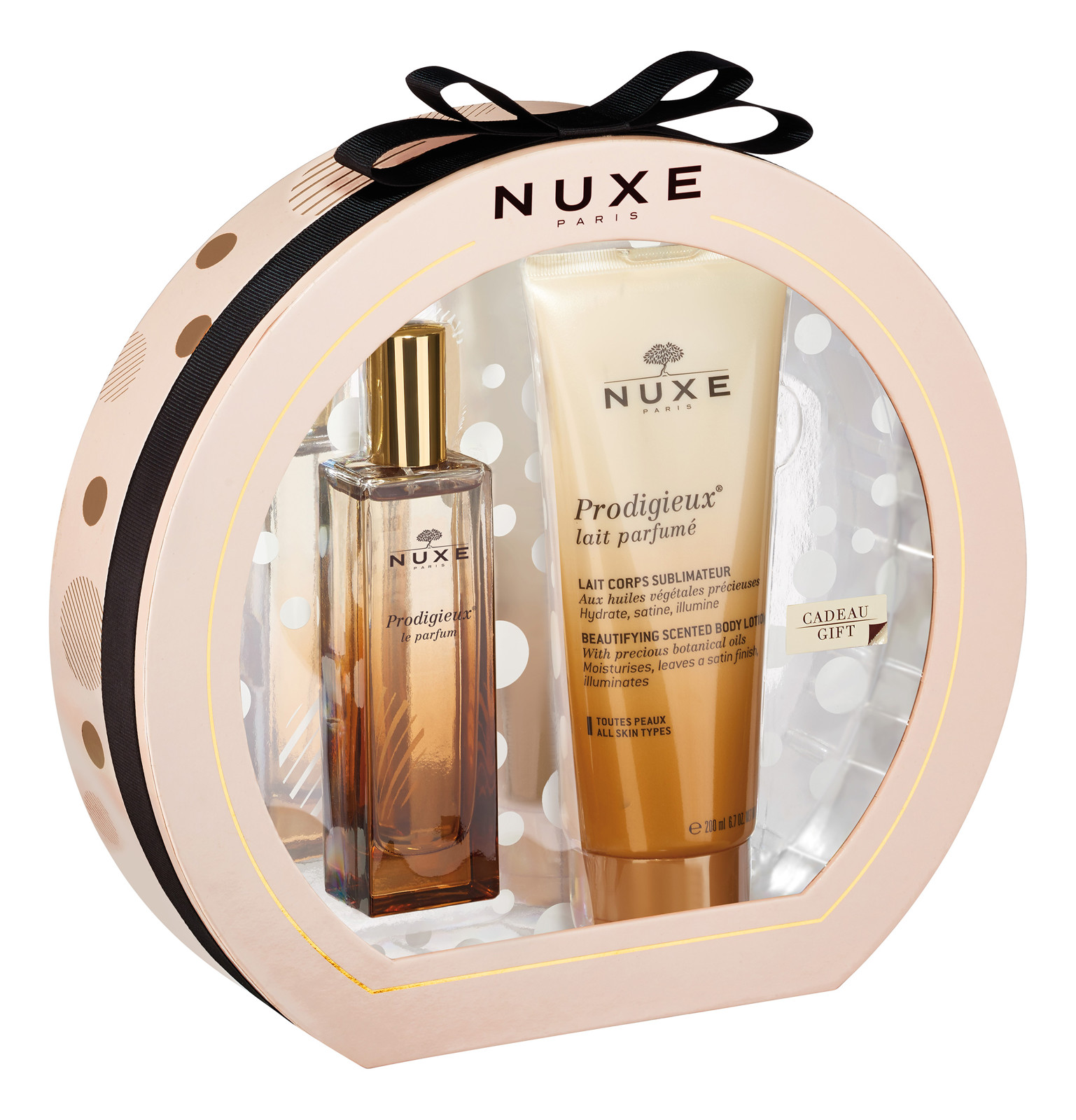 Neustavljivo privlačen in glamurozen darilni set Prodigieux® Parfum je ovit z elegantnim satenastim trakom in je popolna izbira za božično darilo. Čutna NUXE dišava ogreje našo dušo z dvema izdelkoma – Prodigieux® le ParfumČudežnim parfumom (50 ml) in ProdigieuxLait Parfumé, dišečim mlekom za telo (200 ml).
