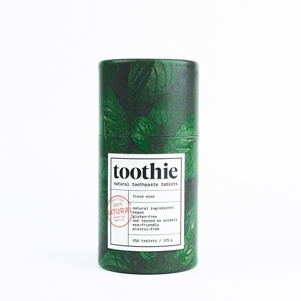 V Sloveniji imamo sedaj novo zobno pasto Toothie, ki je naravna in okolju prijazna, dobimo pa jo v obliki tabletk. V njej so samo naravne sestavine, za katere je značilno, da naredijo naš nasmeh bolj bel. Penasta struktura nas bo sprva mogoče presenetila, a v pozitivnem smislu in kmalu ne bomo več uporabljali običajne zobne paste. Gre za zobno pasto z okusom po meti, ki bo poskrbela za čist in svež okus ustne votline. Narejena je brez sulfatov, parabenov in konzervansov.
