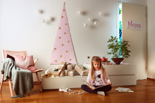 Stenska novoletna smrekica Jelka bo pričarala pravljično vzdušje v otroški sobi. Cena: 98 evrov.