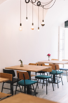 Vsako jutro ponujajo sveže stisnjene naravne sokove brez dodanega sladkorja, kavo, ki je pražena po dogovoru z lokalnim mikropražarjem. Tudi vinska karta je lokalna. Ponudba hrane je lahkotna bistrojska - za zajtrk ponujajo pisane odprte toaste, za kosila in večerje pa zdrave bowle in burgerje.