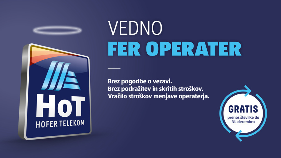 HoT – HOFER telekom – je najmlajši mobilni operater na slovenskem trgu, ki je s svojo fer ponudbo prepričal tako napredne uporabnike kot tudi tiste, ki želijo najboljše cene. HoT se je zavezal, da nikdar ne bo višal cen tarif in pogojeval najboljše cene z vezavo. Storitve in mobilni paketi HoT ne vsebujejo skritih stroškov, uporabniki pa lahko preprosto in brezplačno preklapljajo med tarifami. Prek portala ali aplikacije Moj HoT imajo obenem v vsakem trenutku natančen pregled in nadzor nad porabo ter stroški zase in za svoje družinske člane.