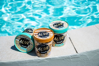ALIVE sladoled je bil prvič predstavljen leta 2018 s palčkami MINI MEAL Grški jogurt z mueslijem in gozdznimi sadeži, MINI MEAL Aronija (100% naraven sorbet iz sadja) ter PROTEIN Vanilija z nizko vsebonostjo sladkorjev. V letu 2019 so lansirali še dva lončka z okusom Arašid-Čokolada in Malina-Cheescake, v letu 2020 pa so lansirali še tretji lonček ALIVE v plasteh z okusom Bela Čokolada-Lešnik. Poleg tega so v letošnjem letu predstavili še dve novi veganski palčki ALIVE-Chia Mango in Konoplja. Pri prvem gre za kombinacijo sorbeta mango in kokosovega sladoleda na bazi kokosovega mleka z dodanimi chia semeni in polnilom iz granatnega jabolka in hibiskusa, pri drugem pa za kombinacijo banane in konoplje, na bazi mandljevega mleka z dodanimi oluščenimi semeni konoplje in kakavovim oblivom. Obe palčki sta primerni za vegane in ponujata edinstven okus v sladoledu.