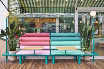 Barvita italijanska restavracija v francoskem Lyonu nas navdušuje z močnimi barvami.