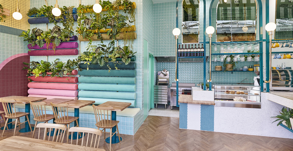 Dizajn predstavlja italijanske korenine s tradicionalnimi elementi. Zgornji prostor spominja na preteklost, a bolj z modernimi estetskimi dodatki. Poleg tega je oblikovalec uporabil zlate barske luči in oboke z ogledali, ki spominjajo na tradicionalne lokale iz starodavne Italije. Neonski napis "Un po di Italianita" (kanček Italije) je eden ključnih elementov, svetle in močne barve pa naj bi polepšale dneve obiskovalcem, medtem, ko uživajo v čudovitih okusih.