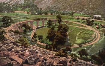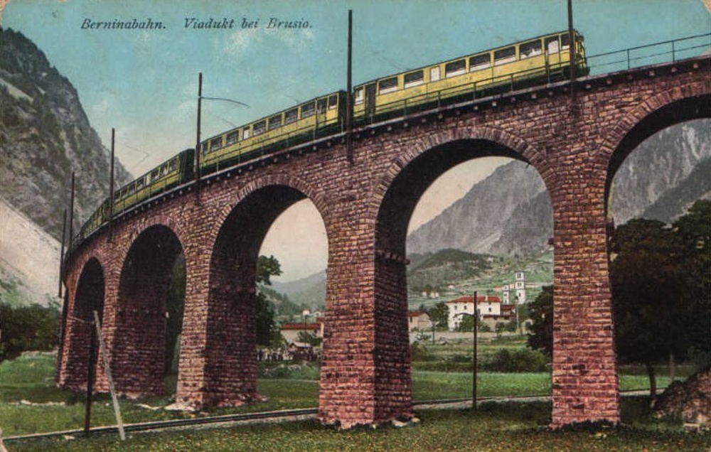Med najbolj fotogenične odseke še zdaj sodi ravno znani 110 metrov dolgi spiralni viadukt pri Brusiu, zgrajen na devetih deset metrov širokih obokih, katerega premer znaša komaj 70 metrov in s pomočjo katerega se železnica spopada z izjemnim naklonom.