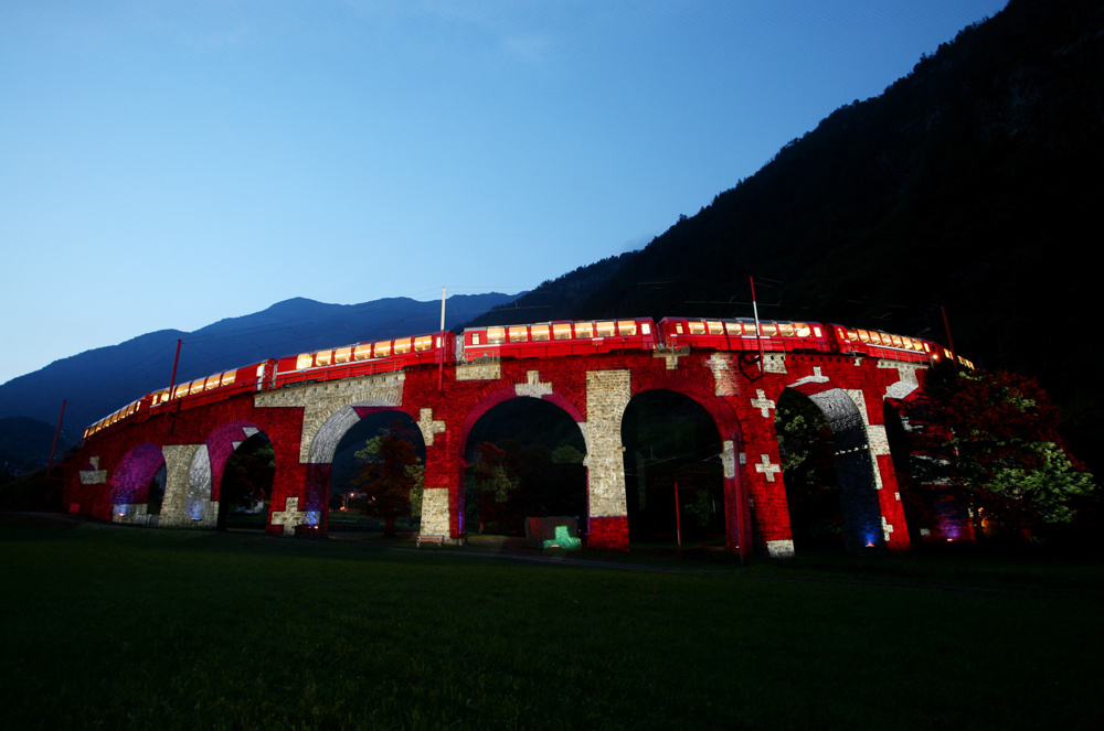 Foto in vir: Rhätische Bahn AG, llumination by swiss light artist Gerry Hofstetter