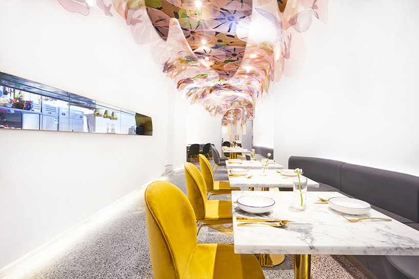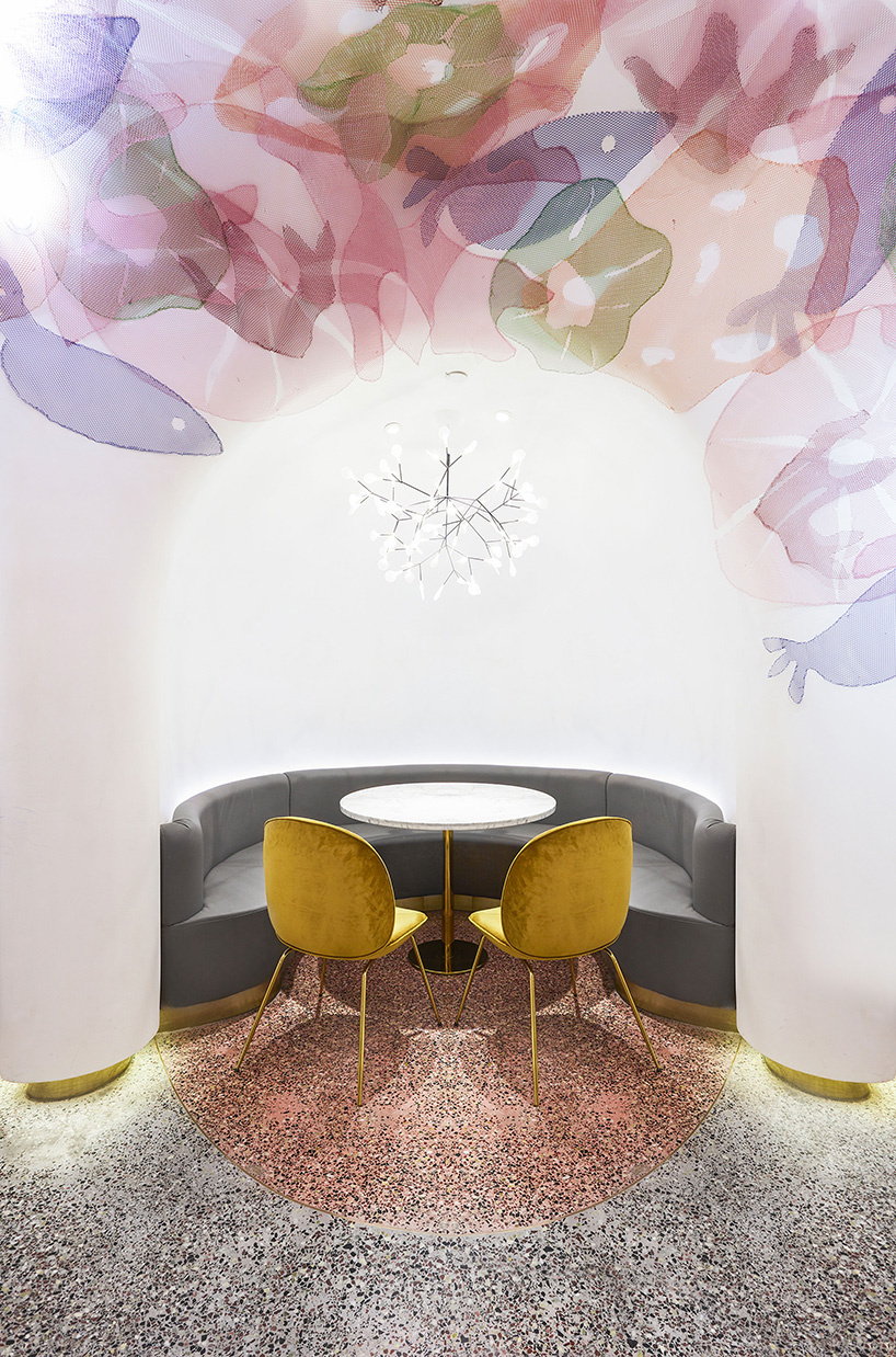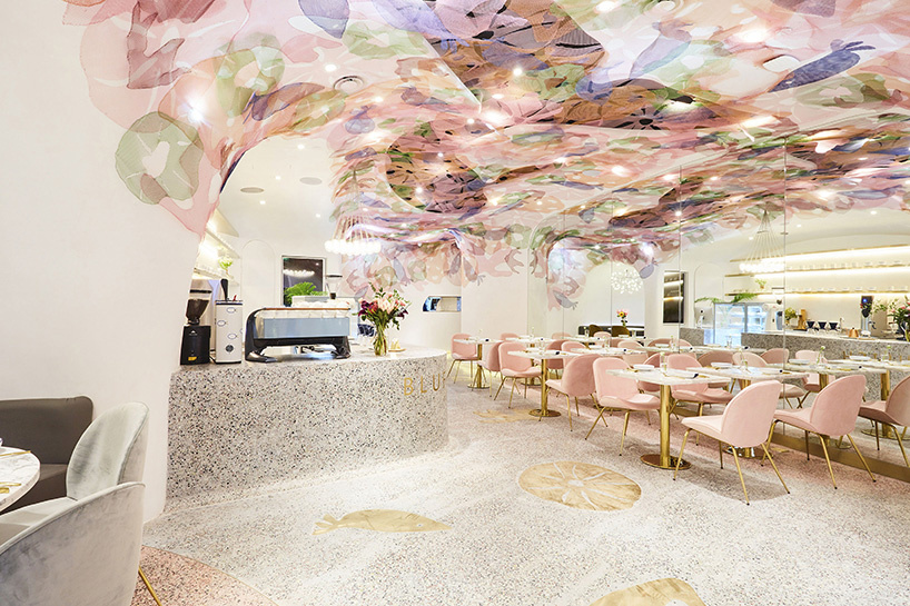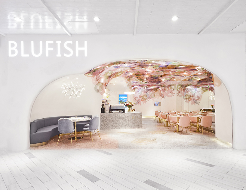 Za notranje oblikovanje restavracije Blufish je zaslužen znani arhitekturni studio iz Londona SODA. Prostor spominja na fantazijski podvodni svet, v katerem se prelivajo motivi koral, vodnih rastlin in rib v belih, rožnatih in zelenih odtenkih. Interier je oblikovan tako, da se gosti restavracije počutijo čimbolj udobno in sproščeno.