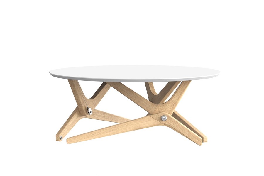 Boulon Blanc je inovativna zložljiva miza, ki jo le z enim gibom spremenimo iz klubske v jedilno mizo.