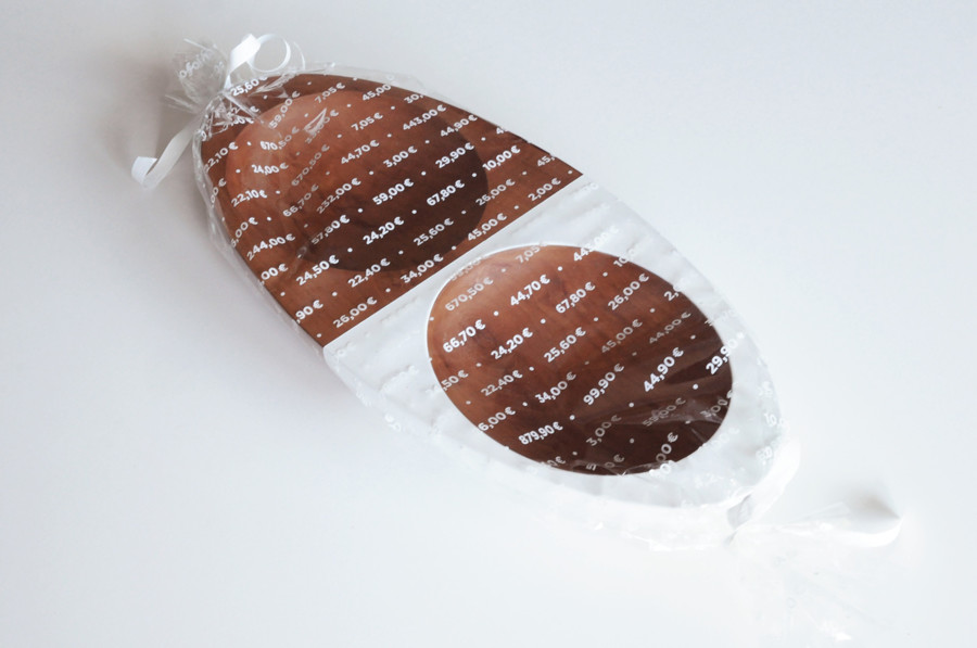 Pri oblikovanju zavijalnega papirja so izbrali prozorno folijo, ki razkriva vsebino našega darila, vendar zato še bolj poudarja, kako nepomembna je cena proti samemu darilu.