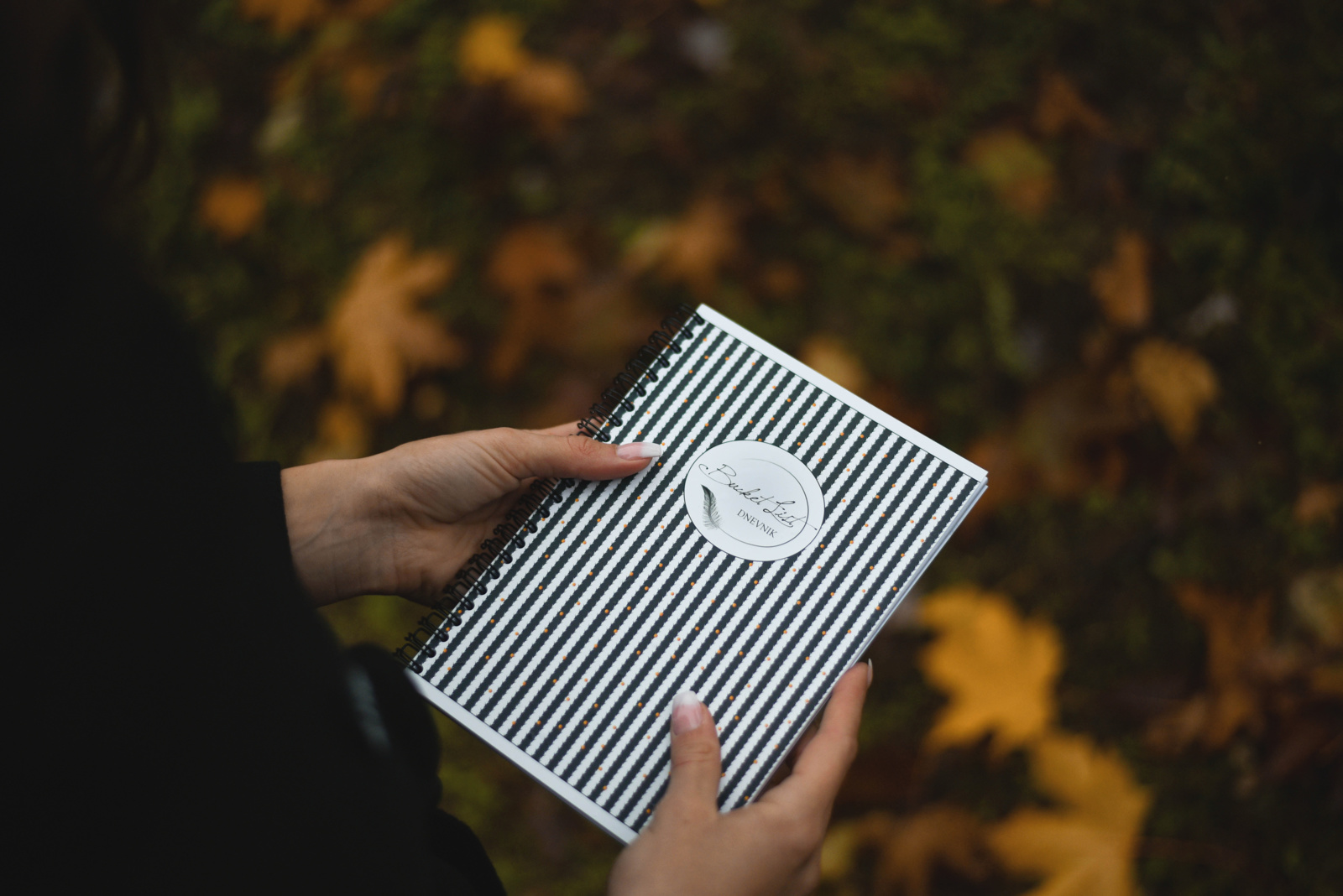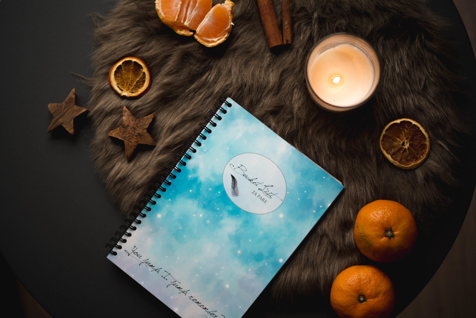 Bucket List dnevnik vsebuje 100 želja, ki jim sledimo, da maksimalno izkoristimo svoje življenje. Razdeljen je na tri kategorije: avanture, raziskovanja in osebno rast. Oblikovan je z največjo mero ljubezni in čarobnostjo, ki vodi do cilja. V vsaki kategoriji pa je na voljo prostor, da dodamo svoje želje in sanje, ki jih želimo doseči.