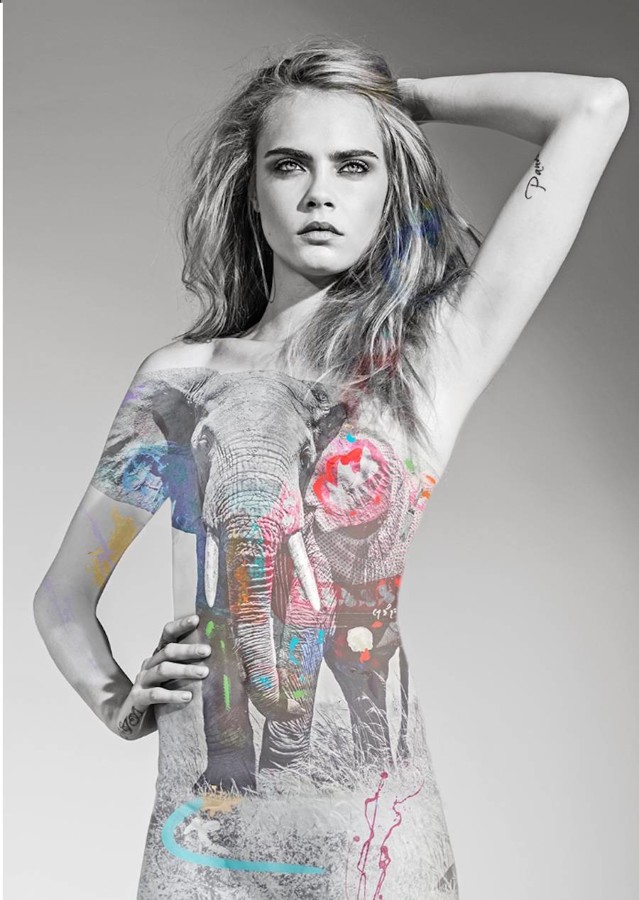 Britanska manekenka Cara Delevingne je tokrat v sodelovanju z umetnikom in fotografom Arnosom Eliasom odvrgla svoja oblačila za dober namen in tako postala ambasadorka kampanje I’m Not A Trophy, ki se bori proti lovu na divje živali.