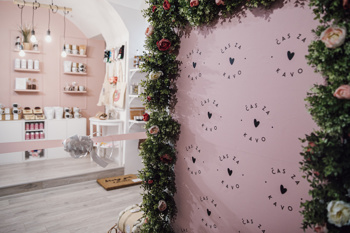 Ko vstopimo v prostor, nas pričakata selfie postaja in roza stena - to in kakovostni slovenski izdelki so tisto na kar pomislimo, ko slišimo za trgovinico Čas za kavo.