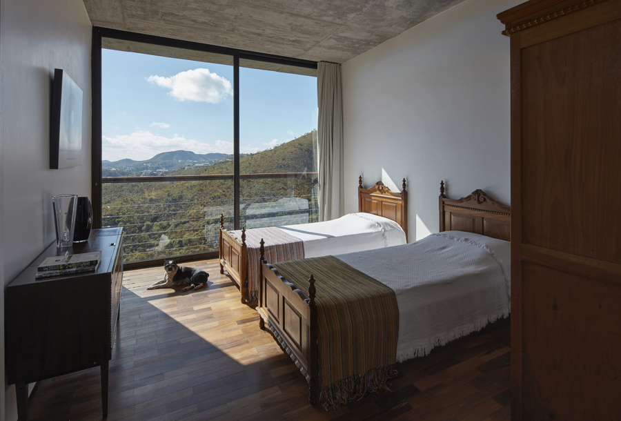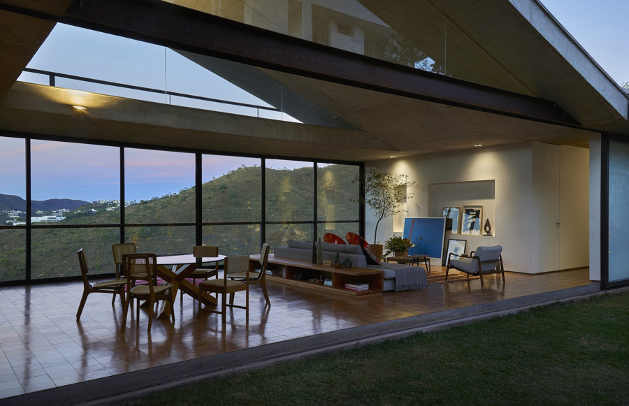 Okna, ki segajo od stropa do tal, nudijo bogat razgled nad razpotegnjeno območje in na mesto Belo Horizonte v daljavi. Ko so vrata odprta, se notranjost nadaljuje na zunanjo teraso, ki vodi do bazena na strehi.