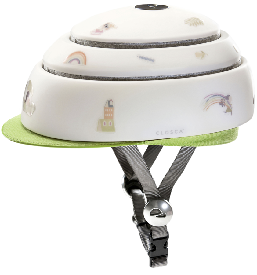 Closca, znamka kolesarskih čelad, je zložljivim kolesarskim čeladam za odrasle zdaj dodala še zložljive čelade za otroke. V podjetju namreč prisegajo na lep dizajn ter preprostost in uporabnost izdelka. Tako kot čelada za odrasle je tudi otroška čelada sestavljena iz treh koncentričnih delov, ki se jih preprosto zloži v enega ter je tako še primernejša za shranjevanje in prevažanje, hkrati pa je dovolj trpežna, da v primeru nesreče zaščiti glavo pred morebitnimi udarci.