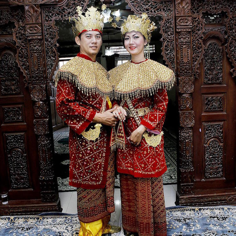Neveste in ženine se imajo v Indoneziji navado odeti v oblačila, ki s številnimi zlatimi in bleščečimi detalji posnemajo izgled kraljev in kraljic.