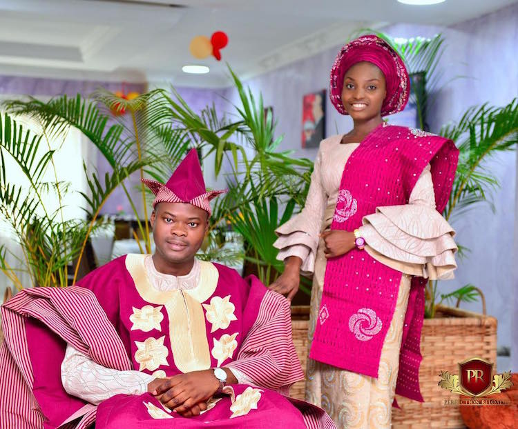 Poročni obleki zaročencev v Nigeriji sta po tradiciji barvno usklajeni. Njuna posebnost so tudi posebna pokrivala, ki se nosijo le na dan poroke.