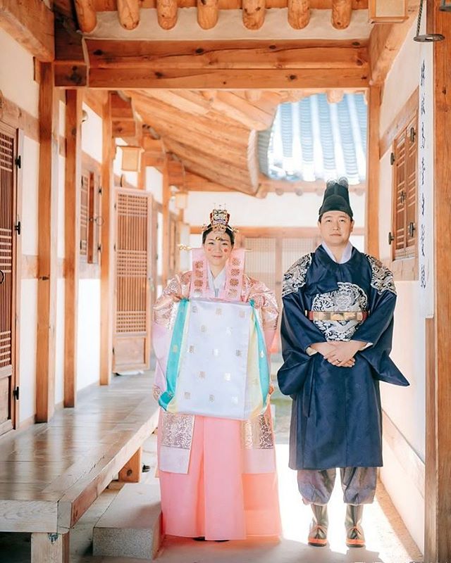 Tradicionalna poročna oprava se v Južni Koreji imenuje hanbok. Običajno je nevestin hanbok narejen iz blaga v svetlih odtenkih, ženinov pa v temnejših odtenkih.