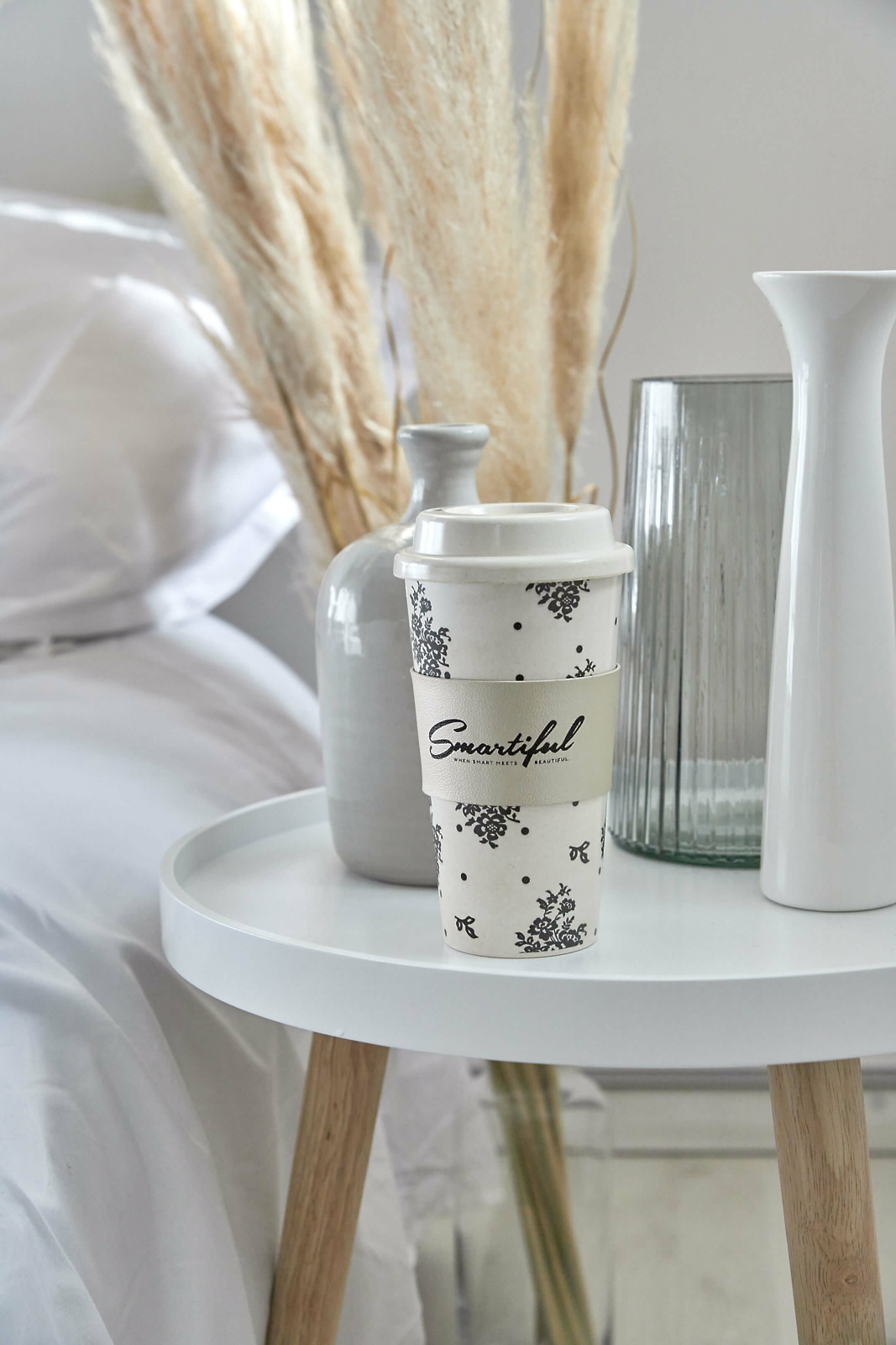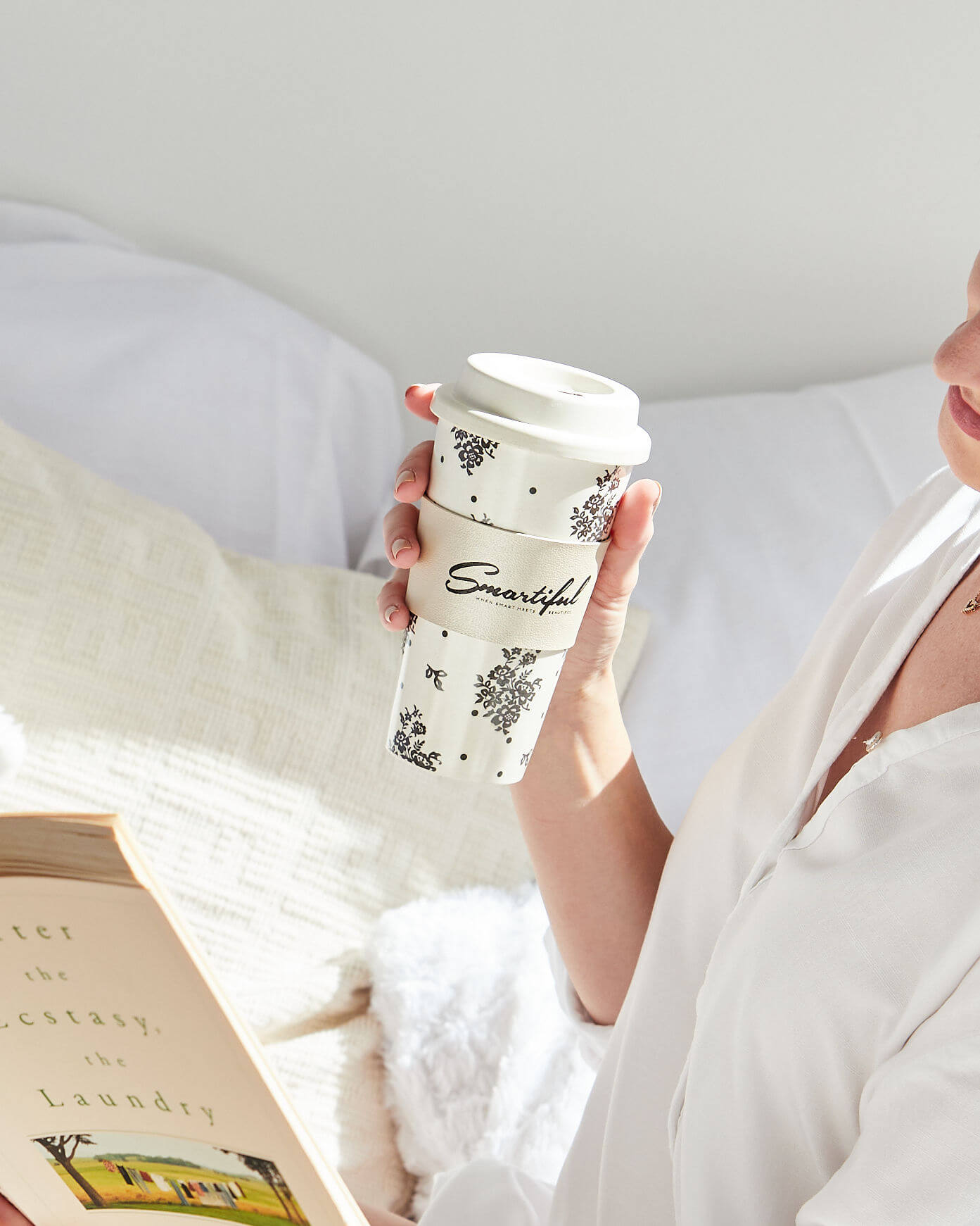 Inovativen, pameten in lep - to je kavni lonček za na pot Smartiful. Tako lonček kot tudi pokrov z navojem sta narejena iz naravnega materiala (bambusova, pšenična in koruzna vlakna), tako da vam ni potrebno skrbeti, da bi se vam vaš najljubši napitek med uporabo polil, tako kot se to večkrat zgodi pri lončkih s silikonskimi pokrovčki. Je nepogrešljiv modni dodatek za vsakega ljubitelja kave in lepega dizajna. Je za vse tiste, ki imajo smisel za stil in hkrati iščejo uporaben in lep kavni lonček. Izbirate lahko pa med dvema različicama: navadna in premium verzija (posebni patenti).