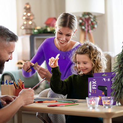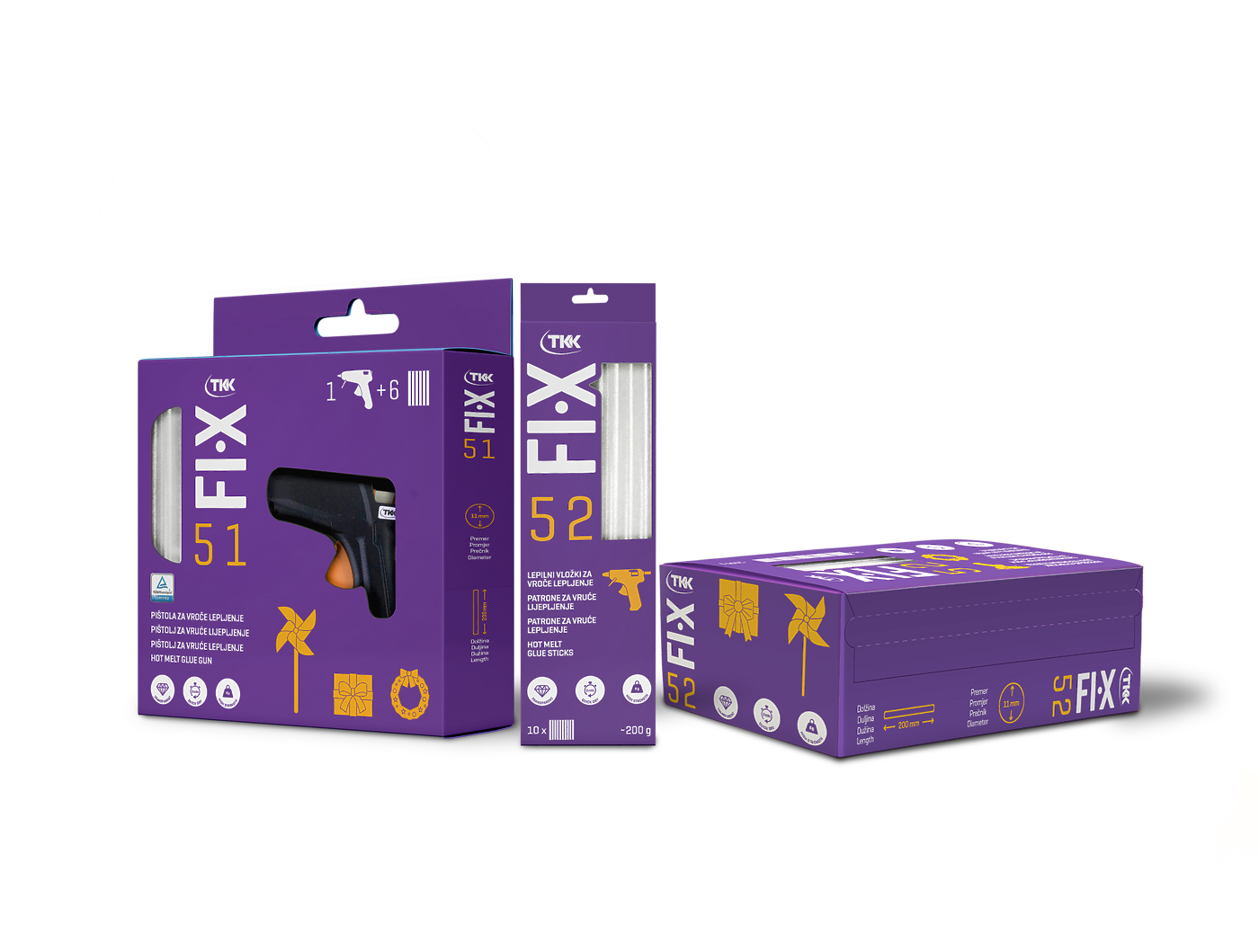 Naš namig: Pištola za vroče lepljenje TKK FIX 51 je idealen pripomoček za dekoracijo in modeliranje. Primerna je za lepljenje lesa, papirja, kartona, tkanin, kovin, umetnih mas in drugih materialov. Priloženih ima kar šest lepilnih vložkov. Idealno za številna ustvarjanja!