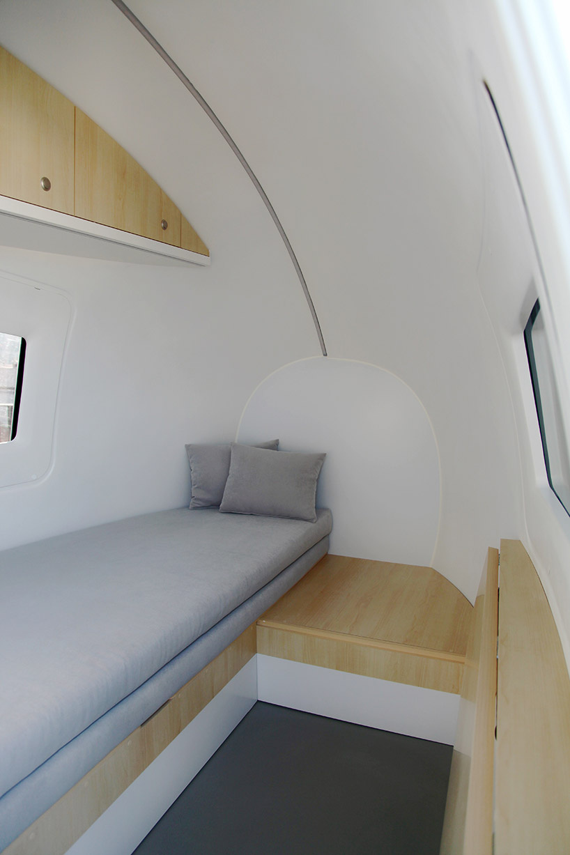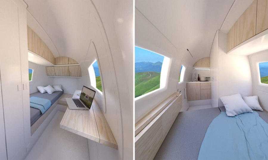 Čeprav je kapsula majhna, v njej lahko udobno bivata dva odrasla človeka. Bivalna enota premore tuš, stranišče, kuhinjo, zložljivo posteljo ter shrambo. Poleg sončnih celic trajnostno zasnovano domovanje vključuje celo mini vetrno turbino ter zbiralnik deževnice.