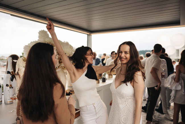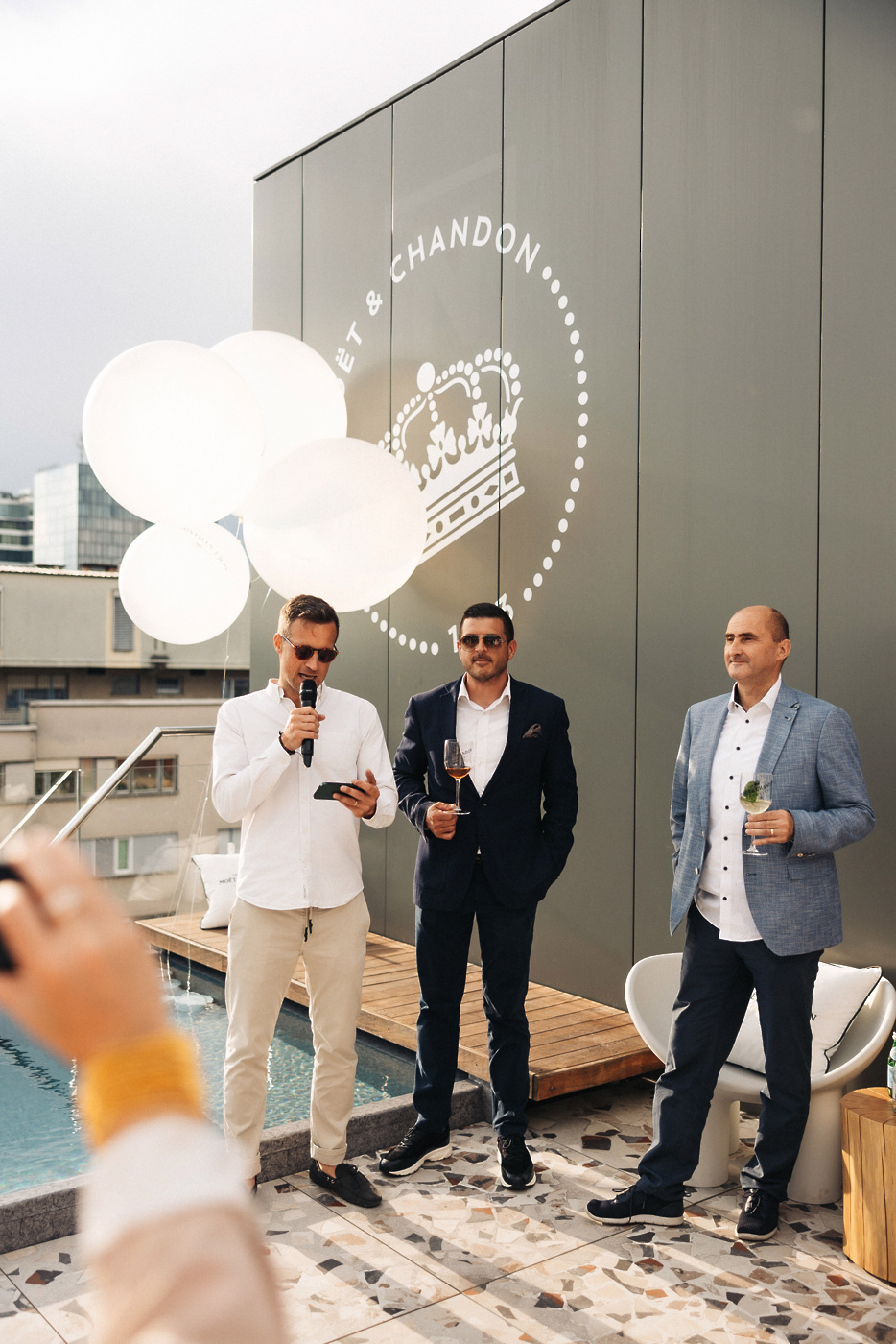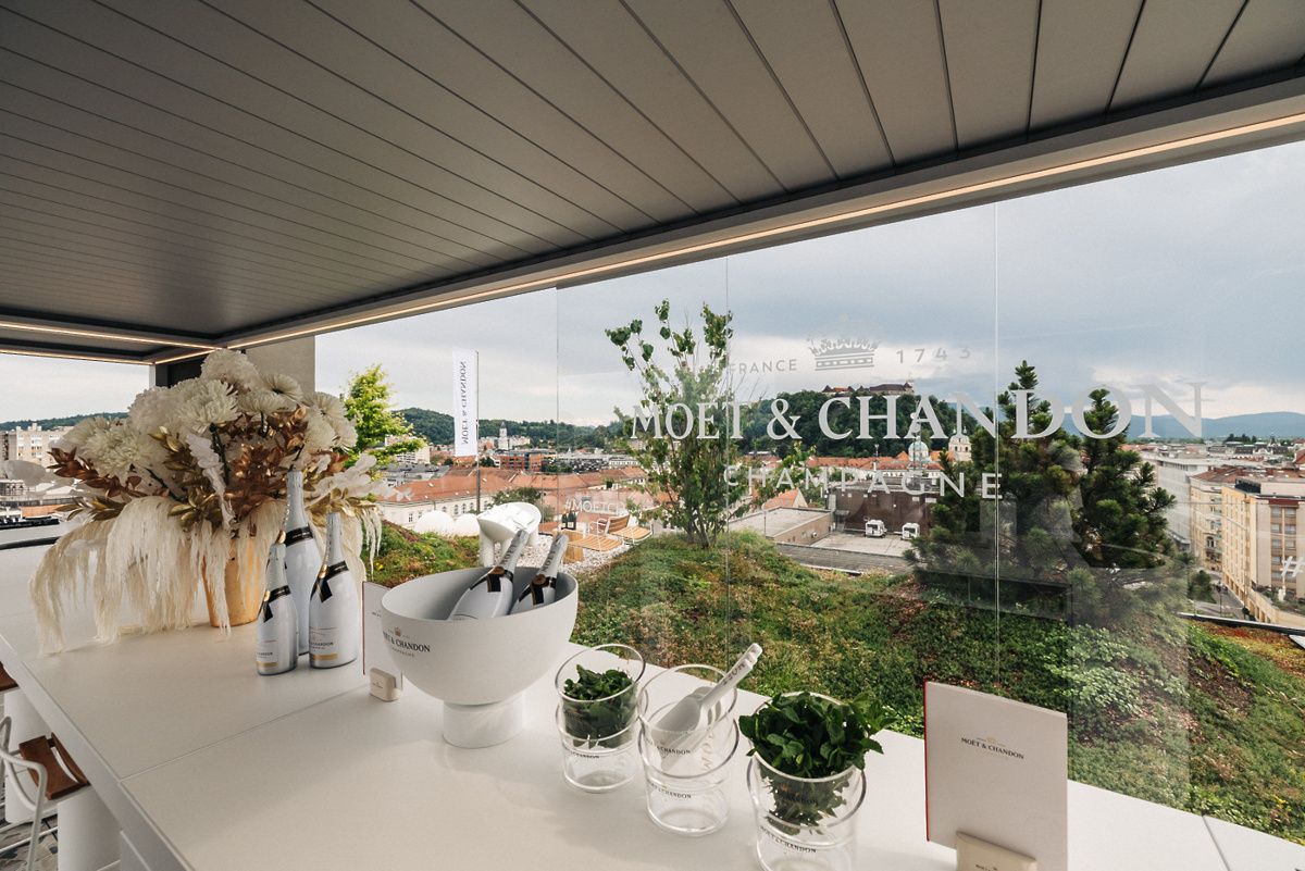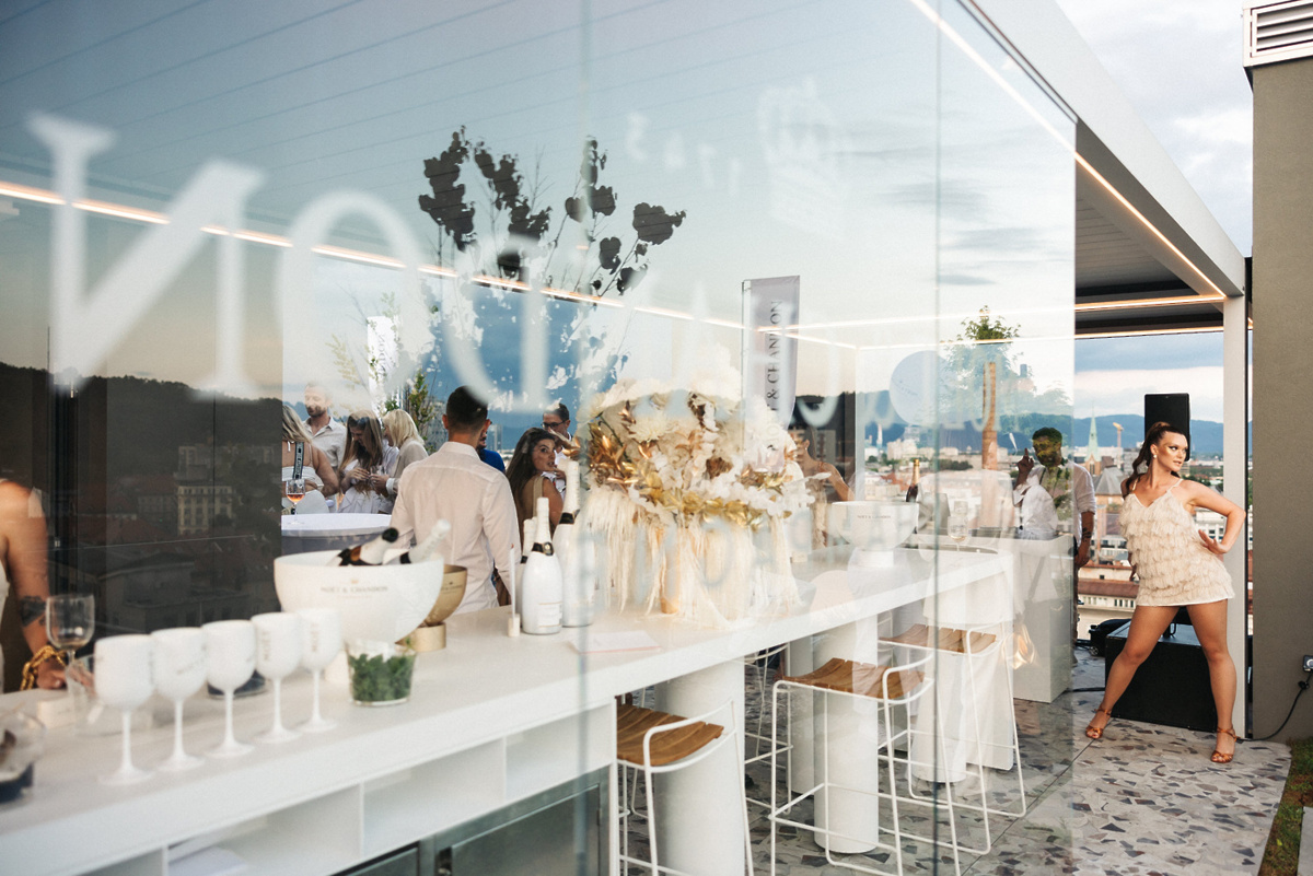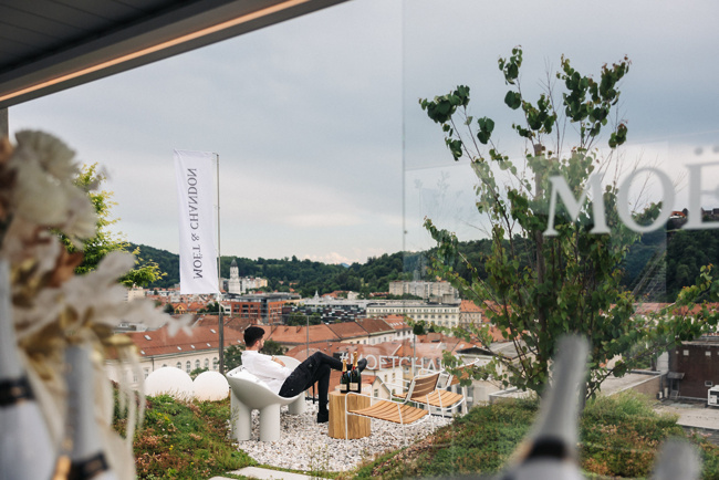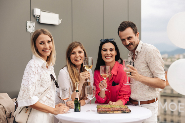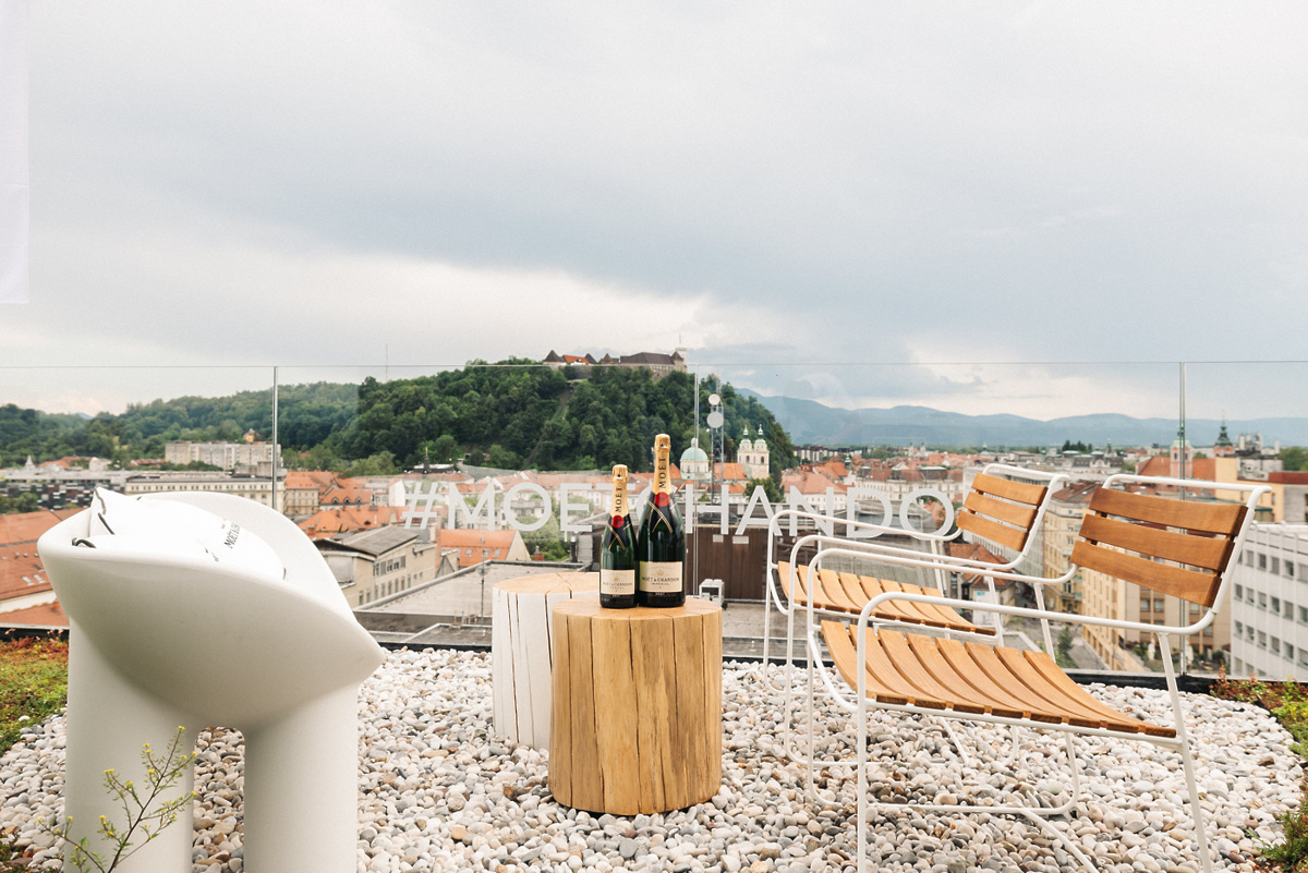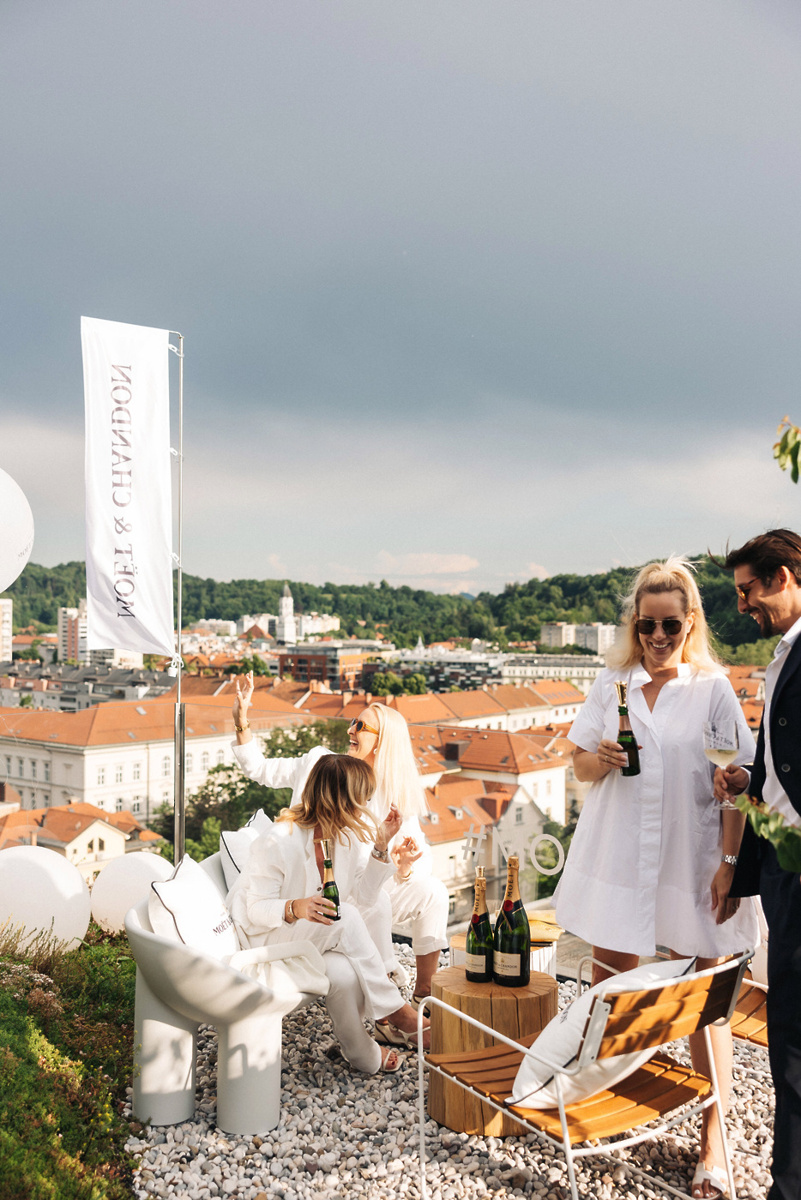 In zabave včeraj na terasi nad mestom vsekakor ni manjkalo. Poleg radoživih mehurčkov so jo tja prinesli tudi Neobrass kvintet in DJ Matija Marion, čute obiskovalcev pa so še dodatno prebudili prigrizki izpod rok chefa Klemna Skubica, ki so vrhunsko dopolnili tri izbrane etikete šampanjcev, s katerimi so gostitelji razvajali goste – ikonični Impérial, romantični Rosé Impérial in Ice Impérial, razvit posebej za vroče poletne trenutke, saj predstavlja prvi šampanjec, ki ga pijemo z ledom. Vsi trije bodo skupaj z ostalimi etiketami hiše Moët & Chandon na voljo v redni ponudbi bara, ki jo bo dopolnjeval še spremenljiv izbor premium koktejlov – dolgih pijač iz izbora pijač skupine Moët Hennesy.