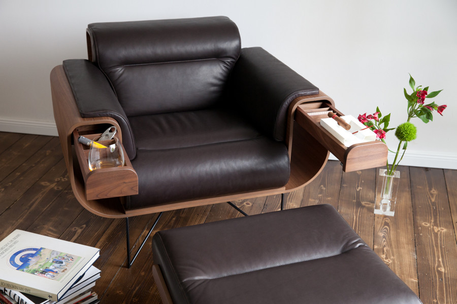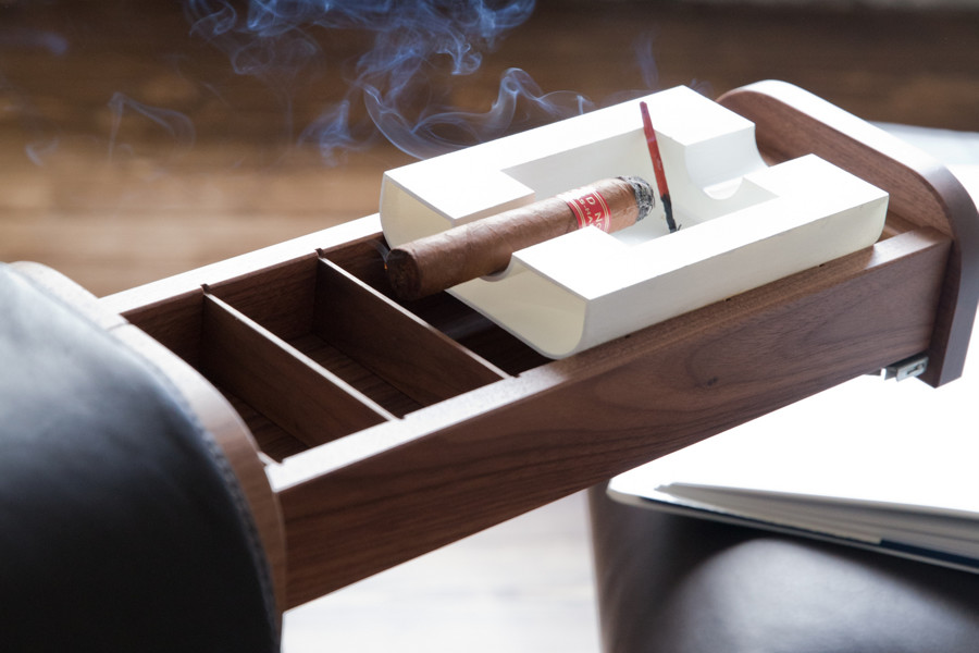 Fotelj, za katerim stojita čilski arhitekt Rodrigo Gonzales in nemški odvetnik Alexander Sauer, je narejen iz oblikovanega bukovega in orehovega lesa (ki prihajajo iz trajnostnih nemških gozdov)in ima posebno oblikovane predale, vgrajene v naslonjala za roke, izdelane iz španske cedre, ki služijo za odlagališče za kadilske pripomočke ali pijačo po izbiri. Oblazinjenje pa je izdelano iz čistega, okolju prijaznega mehkega anilnega usnja.