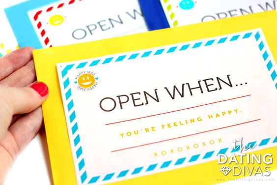Svoje najdražje letos opremimo s pismi, ki jih bodo razvedrila ob vsaki priložnosti. Pisma naslovimo z namenom za določen trenutek v življenju. Nekaj idej: Odpri ko si žalosten, odpri na deževen dan, odpri ko greš na morje, odpri ko se slabo počutiš, odpri ko dobiš sanjsko službo, odpri ko magistriraš, odpri ko dobiš prvega otroka, odpri ko si lačen, odpri ko si len, odpri ko si želiš zabave…