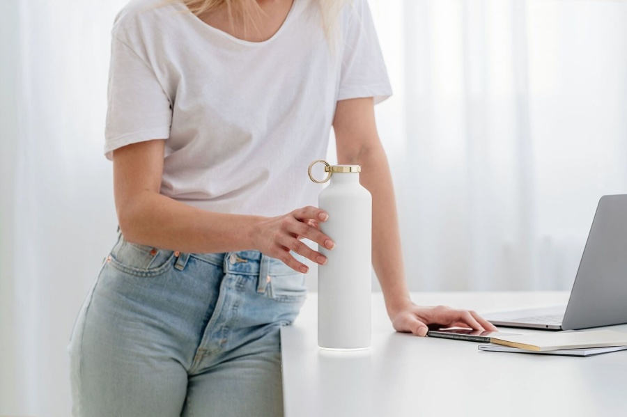 Steklenička je izdelana je iz nerjavčega jekla in opremljena unikatnim kosom pravega marmorja. Zaradi dvojne izolacije voda v njej ostane mrzla do 24 ur in topla do 12 ur. Njen volumen znaša 680 mililitrov, na voljo pa je v 3 različnih barvah – beli, svetlo roza in temno sivi.