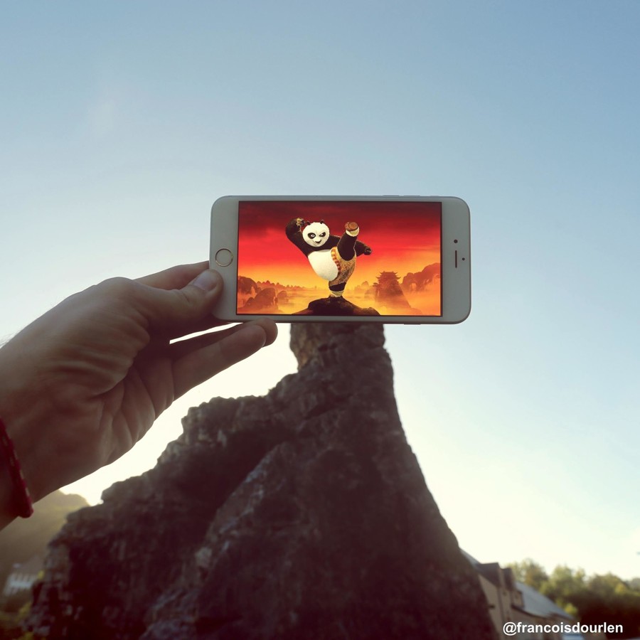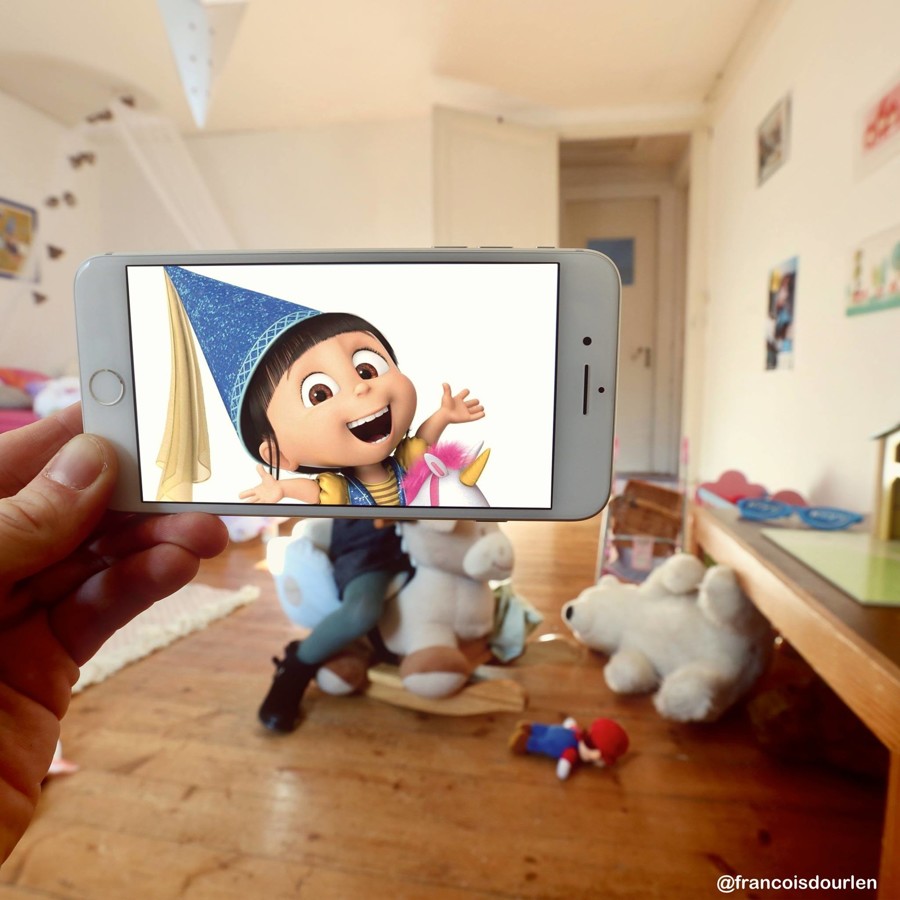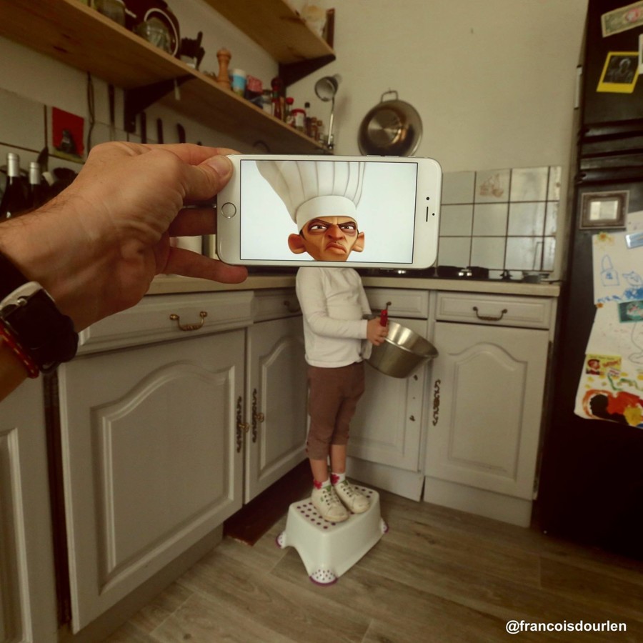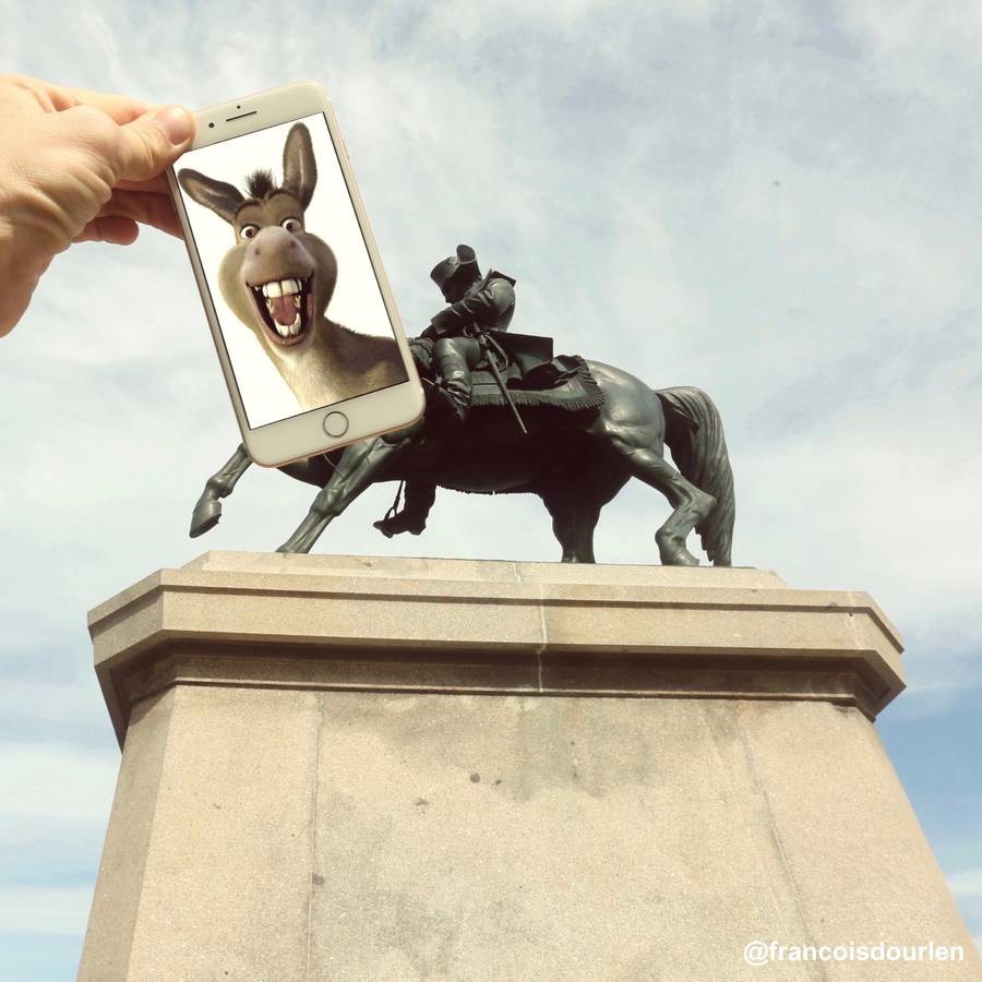 François Dourlen se je zahvaljujoč svojemu pametnemu telefonu in s kančkom domišljije poigral z montažo in združil resnično življenje z liki iz sveta popularne kulture. To je dokaz, da z novimi tehnologijami lahko raziskujemo povsem nove aspekte fotografije in se poigramo z možnostmi, ki jih ponujajo karikature in viralna umetnost.