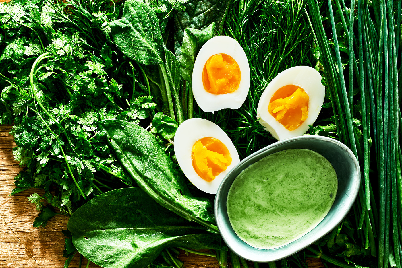 Frankfurt na Majni zelena omaka z zelišči in kuhanim jajcem. © DZT / Knut Pflaumer
