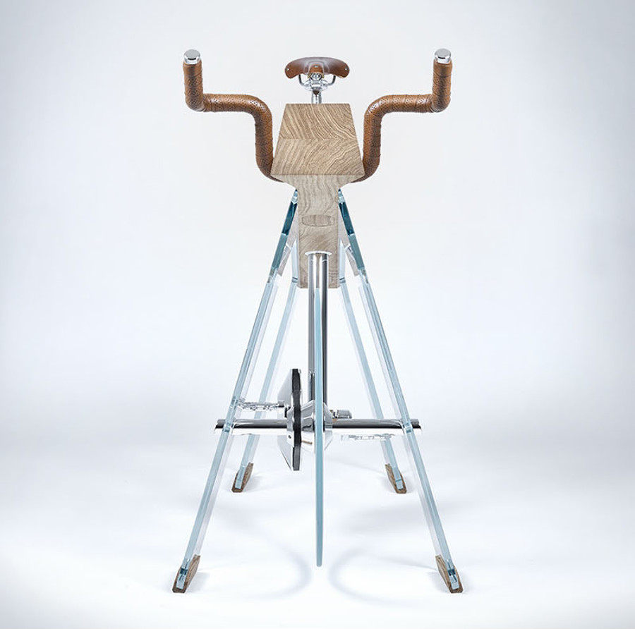Kako udobno je, ni znano, je pa videti popolno za v muzej ali galerijo, saj sta si brata dala duška in ga oblikovala iz stekla, lesa in kroma, med krmilom pa sta elegantno dodala še stojalo za tablico, na kateri lahko spremljamo prenose kolesarskih dirk, na primer.