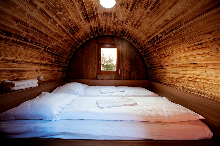 Svoj glamping imajo tudi v Beli krajini, natančneje v idilični vasici Podlog pri Dragatušu, kjer so leta 2014 apartmajem dodali še štiri glamurozne mobilne hišice modernega dizajna. 40 kvadratnih metrov velike hišice s televizorjem, sanitarijami in dnevno sobo lahko sprejmejo do štiri osebe, imajo pa tudi zunanjo teraso. Za vse goste so na voljo wellness prostor, rekreacijski prostor, skupni prostor in naravni plavalni ribnik. Cena? Od 90 evrov dalje.