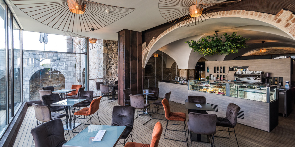 Grajska kavarna na Ljubljankem gradu nas že več kot desetletje razvaja z odlično kavo, domačim sladoledom, sveže narejenimi vitaminskimi napitki, vrhunskimi sladicami Lolitinih slaščičarskih mojstrov, slastnimi slanimi zalogajčki za potešitev prve lakote, izborom vrhunskim vin, peninami in odličnimi koktajli.