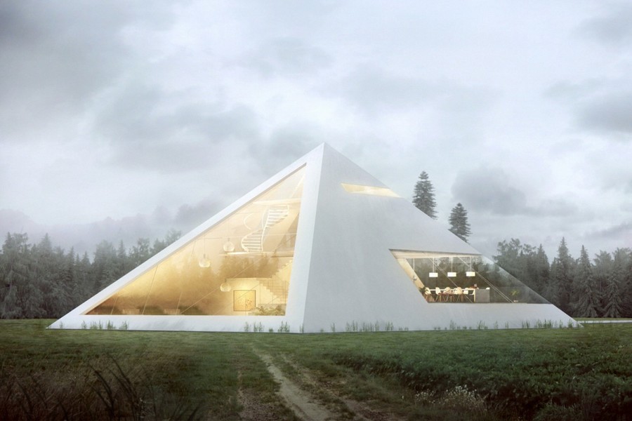 Mehiški arhitekt Juan Carlos Ramos je predstavil koncept piramidne hiše, načinom bivanja, za katerega se lahko prav zares vprašamo kako da ni preživel izzivov časa. Inspiracija je bila mehiška kulturna dediščina, tamkajšnji templji in igra z geometrijo in zoperstavljanjem tovrstnih oblikovalskih rešitev v naravi. Piramidna hiša je tako iz treh nadstropij, prednjačijo pa bele stene, ki jih dopolnjuje smiselna uporaba stekla. Ena stran piramidne hiše je tako povsem steklena, in omogoča svojevrstno prehodnost med zunanjim okoljem in notranjostjo piramidne hiše. V njej lahko najdete vse ključne prostore sodobnih hiš kot tudi garažo, kot relikvij sodobnega časa v prepletu s preteklostjo.