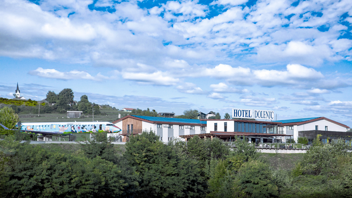 Hotel stoji na izjemno zanimivi lokaciji ob avtocesti, ki povezuje Ljubljano in Zagreb. Pritegnil vas bo že ob prvem pogledu in nemudoma boste želeli zaviti na izvoz Novo mesto – zahod. Zakaj? Če ne vi, bodo otroci na zadnjih sedežih vašega avtomobila zavpili: “Letalooooo!”