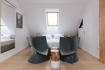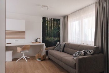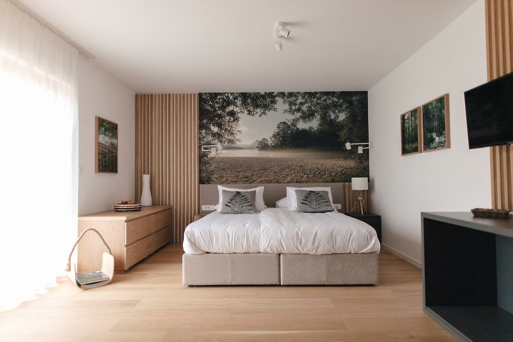 Prostorne in zračne sobe so urejene minimalistično in moderno, v lesenih detajlih pa prevladujejo beli in sivi odtenki. Vsaka soba ima tudi pisane tapete z motivom narave. Velika hotelska soba in balkoni v sobah so še en čudovit dodatek, ki vam omogočajo zajtrk na prostem, branje knjige ali preprosto sproščanje. Hotel ima štiri zvezdice in je 7 km oddaljen od vodnega parka & wellnesa Bohinj.