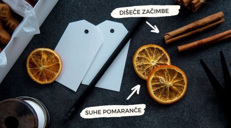 December je znan po določenih vonjih in okusih, kot so kuhano vino, cimet, suhe pomaranče in smola. Vsi ti naravni materiali so več kot dobrodošli pri zavijanju daril. Med sprehodom v gozdu naberite vejice in listje, doma pa pobrskajte po kuhinji, posušite pomarančo ali za okrasek vzemite cimetovo palčko ... Ko zaključite z zavijanjem, te malenkosti pritrdite na darilo ter s tem pričarajte malenkost drugačen, a še vedno prazničen in šik videz.