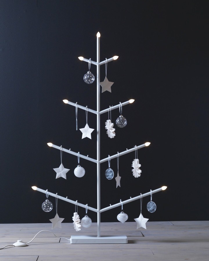 Pozabimo na umetno jelko in izdelajmo inovativno drevesce iz lestve, kovine ali žic. Obdajmo ga z lučkami – in zbiranje prazničnih paketkov pod njim se lahko začne.