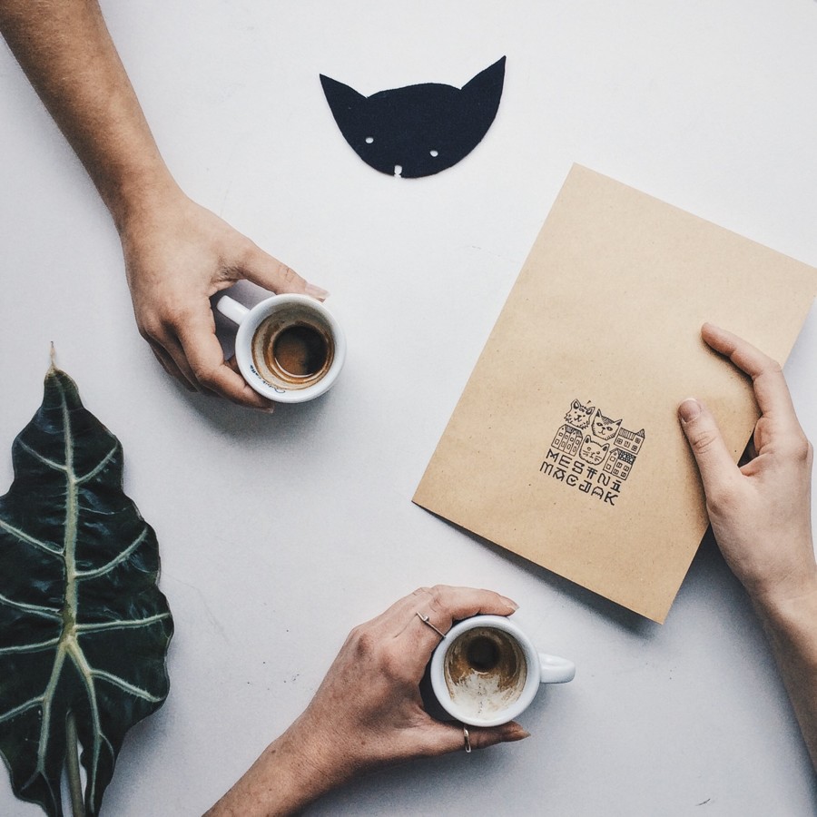 Prav zapuščena črna mačkona Darko in Viktor sta bila razlog, da je Mestni mačjak sploh nastal. Maša Pirc, ena od pobudnikov in ustanoviteljev Mačjaka, nam je skupaj s preostalimi prostovoljci zaupala, da so že prej hranili nikograšnje muce na dveh lokacijah v Kranju, ker pa se Darko in Viki nista bala človekove bližine, so sklenili, da jim najdejo dom. "Ugotovili smo, da je dvema črnima mucoma težko najti skupen dom – vzeti ju ni želelo nobeno društvo, začasne namestitve smo našli le za krajši čas. Zato smo se odločili, da ustanovimo svoje društvo. Vsi člani društva imamo doma že pravi mali živalski vrt, zato smo vedeli, da moramo najti prostor kjer bomo muce lahko namestili. Našli smo prostor za najem v centru Kranja in se lotili njegove prenove," nam je pojasnila ekipa, ki je k sodelovanju pri podpori muc povabila tudi slovenske ustvarjalce in oblikovalce. Po uspešnih licitacijah njihovih izdelkov se jim je porodila ideja, da bi ustvarjalci izdelali prav poseben izdelek, ki je (in marsikateri še bo) zdaj na voljo le v Mestnem mačjaku: "Zaenkrat so med drugimi na voljo grafike in printi Ane Maraž, Zale Kalan, Romine Ivančič, Franca Vozlja … Zelo smo ponosni na naše sodelovanje z indonezijskim ustvarjalcem Jordanom Marzukijem iz The Balletcats, ki nam je velikodušno odstopil dizajn Screaming Cat za naše tote bage. V prihodnosti si želimo ponuditi čim več svojih izdelkov. V pripravi so že kuhinjske krpe, printi, nove nogavice in emajlirane lončki."