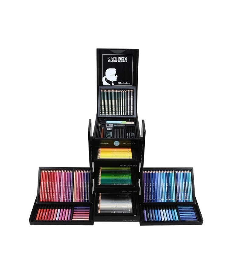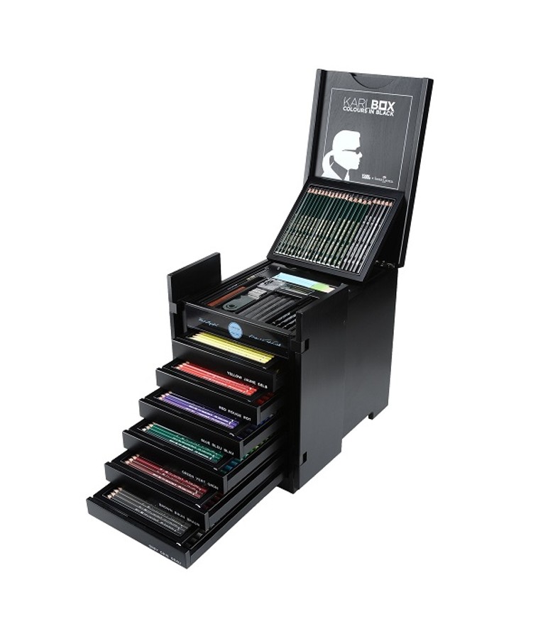 Karl Lagerfeld, znameniti modni oblikovalec in Faber-Castell sta skupaj ustvarila paleto barvic, ki sliši na ime Karlbox. Prisrčno poimenovan set vsebuje kar 350 barvic, vse pa so urejene po odtenkih, ki nam omogoča najlažjo navigacijo po bogatem zakladu. Karlbox odlikuje tudi inovativno oblikovan set po vzoru tradicionalnih kitajskih poročnih zabojev. Karlbox je na voljo v omejeni seriji 2.500 zabojev, v izbrane Lagerfeldove butike in britansko prodajalno Harrods pa prispejo 19. septembra 2016.