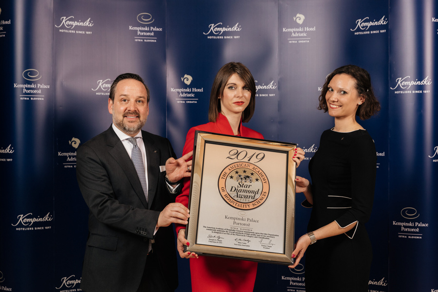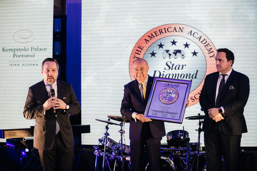Ameriška akademija American Academy of Hospitality Sciences je na gala prireditvi hotelu Kempinski Palace Portorož podelila prestižno globalno nagrado za odličnost v hotelirstvu Star Diamond Award. S tem se je portoroški hotel pridružil druščini elitnih hotelov po vsem svetu. Nagrado je iz rok direktorja akademije Josepha Cinque-a sprejel novi generalni direktor hotela Kai Behrens.