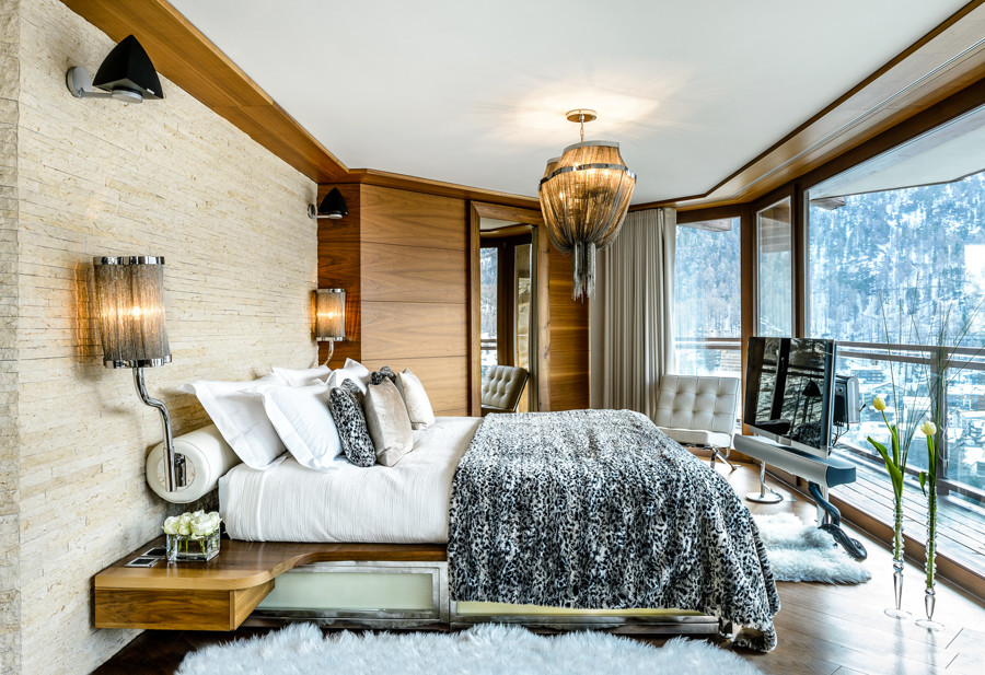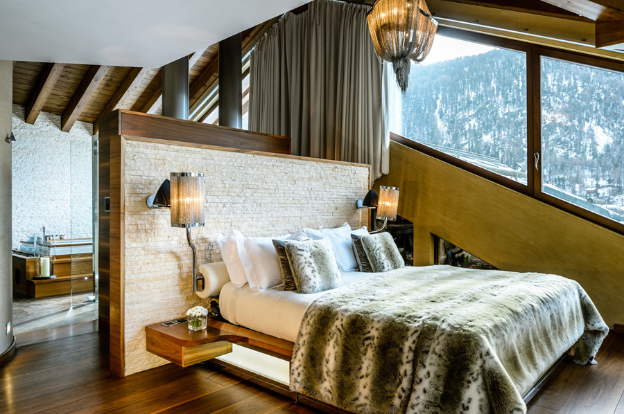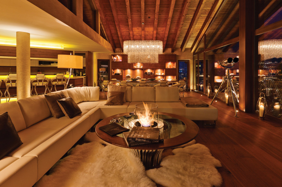 Zermatt leži v osrčju švicarskih Alp, obkroženih z več kot 30 štiritisočaki, med njimi tudi veličastnim Matterhornom. Ponuja 360 km urejenih smučarskih prog in mnoge udobne nastanitve z gurmanskimi gorskimi restavracijami. Mednje zagotovo spada tudi Chalet Zermatt Peak, kjer gostje ob prihodu v zastekljenem lobiju najprej popijejo kozarček šampanjca. Od tam se skozi panoramska okna in steklen strop razprostira pogled na okoliško gorovje, notranjost pa so zasnovali priznani notranji oblikovalci. Pri Chalet Zermatt Peak pravijo, da niso pri ničemer skoparili, zato k opremi spadata tudi marsikatera umetnina in unikatno pohištvo. Podoben razgled ponuja tudi pet posamično zasnovanih spalnic, kjer nam niti ni treba vstati iz postelje, da bi uživali v pogledu, še zavese si lahko odstremo z daljincem. Glavni kuhar Alfonso Crescenzo ustvarja prilagojen meni, saj upošteva osebne želje in okuse gostov. Vsak dan pripravi gurmansko večerjo s petimi hodi in uporablja le najboljše sestavine in sveže proizvode. S posebnim menijem pa je poskrbljeno tudi za otroke. Gostje se lahko sprostijo v hišnem spaju, za strastne športnike, ki jih smuka ne zdela dovolj, pa je na voljo še fitnes.