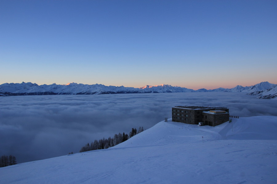 Predstavljajte si nekdanjo gondolsko postajo na 2.112 metrih v osrčju smučišča Crans-Montana, preurejeno v hotel s 16 sobami. Vse imajo velika panoramska okna, tako da lahko razgled na dolino Rhone in najvišje vrhove Alp, od Matterhorna do Mont-Blanca, občudujemo kar iz postelje. Chetzeron je zatočišče za športne navdušence. Že sam dostop do hotela je precej avanturističen. Gondola tja namreč ne vozi več, zato lahko gostje do hotela pridejo peš, s kolesom, terenskim vozilom, smučmi ali motornimi sankami. Vendar pa tja zahajajo tudi najbolj “epikurejski” popotniki – najverjetneje zaradi teras z visečimi mrežami in ležalniki, ogrevanega zunanjega bazena, parne kopeli in savne. Posebna je tudi hotelska kuhinja – glavna kuharica Lucia Cordonier prisega na rafinirano alpsko kuhinjo in sezonski meni z regionalnimi okusi in svežimi domačimi pridelki. Za tiste, ki bi se radi naučili njene veščine, pa organizira tudi tečaje.