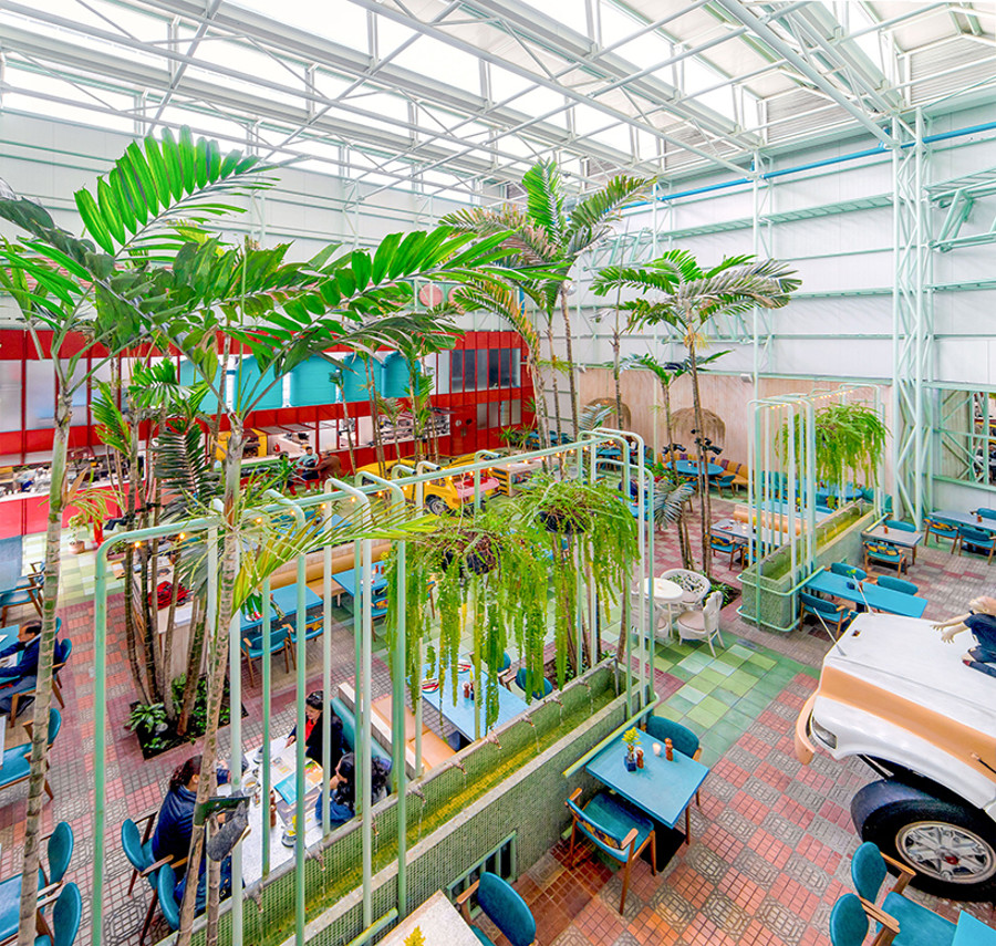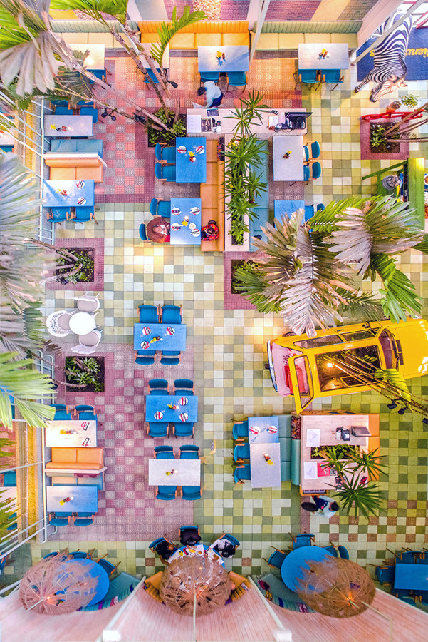 Taller Ken, priznani arhitekturni studio s sedežem v New Yorku in Gvatemali je zasnoval nenavadno restavracijo, ki v višino meri vrtoglavih 15 metrov, polno živih barv in detajlov med katerimi najbolj izstopajo palme. Največja zanimivost restavracije Madero Café pa je prav gotovo rumeni avtomobil Yugo, iz katerega se bohoti razkošna palma. Ustvarjalci tega velikega arhitekturnega projekta pravijo, da so želeli ustvariti pravo tropsko okolje, kjer še posebej izstopajo ročno izdelane pisane ploščice v različnih vzorcih. Glede na velikost restavracije se lahko vsak gost mirno sprehodi v razkošnem prostoru in najde kotiček, kjer bo užival v vrhunskih prigrizkih, ki jih ponuja restavracija v Gvatemali.